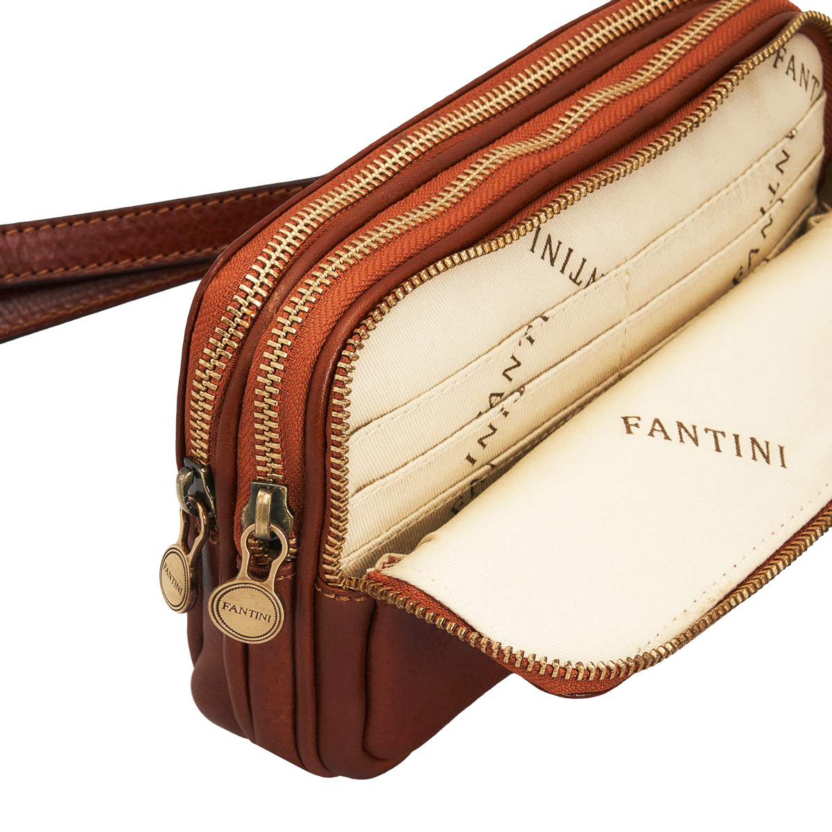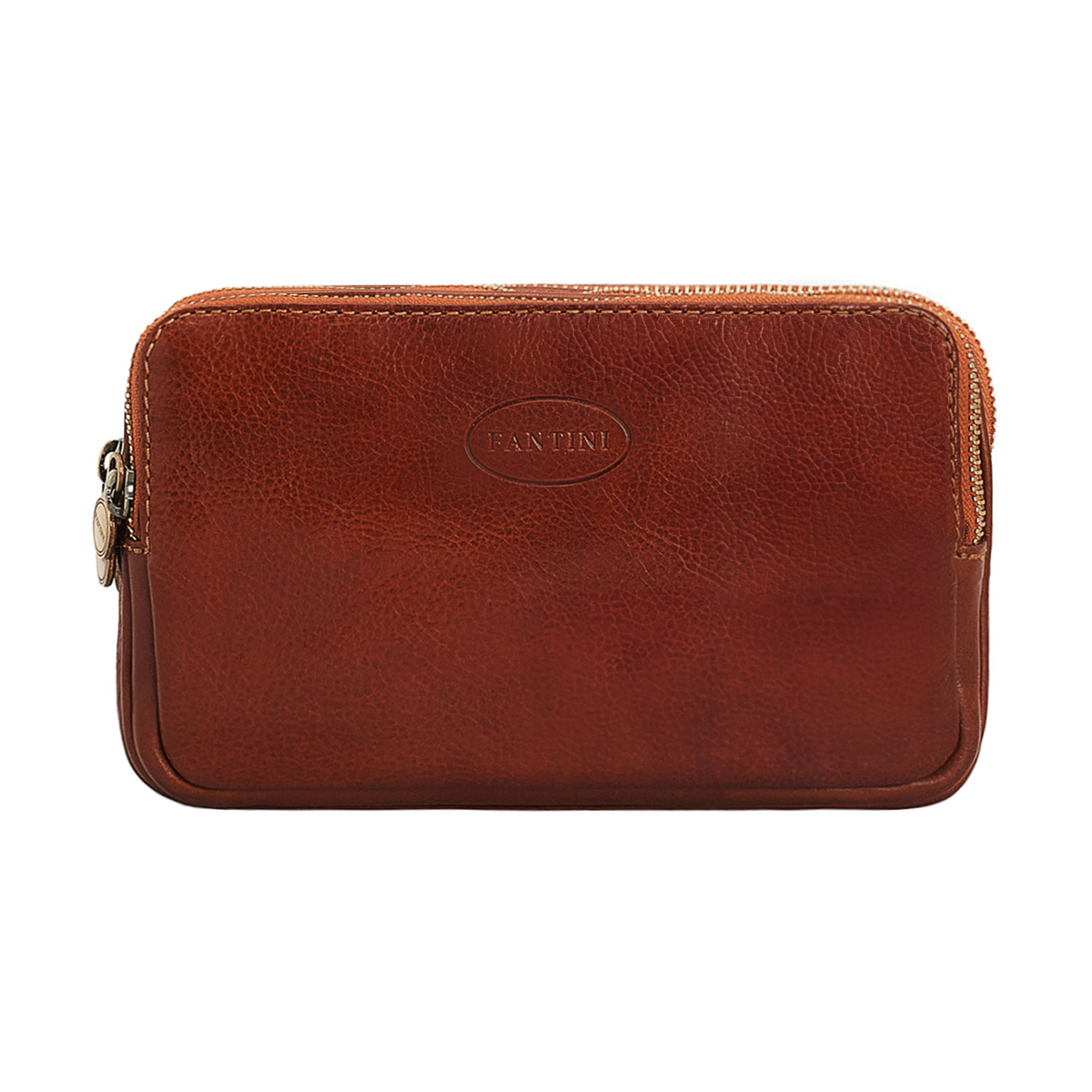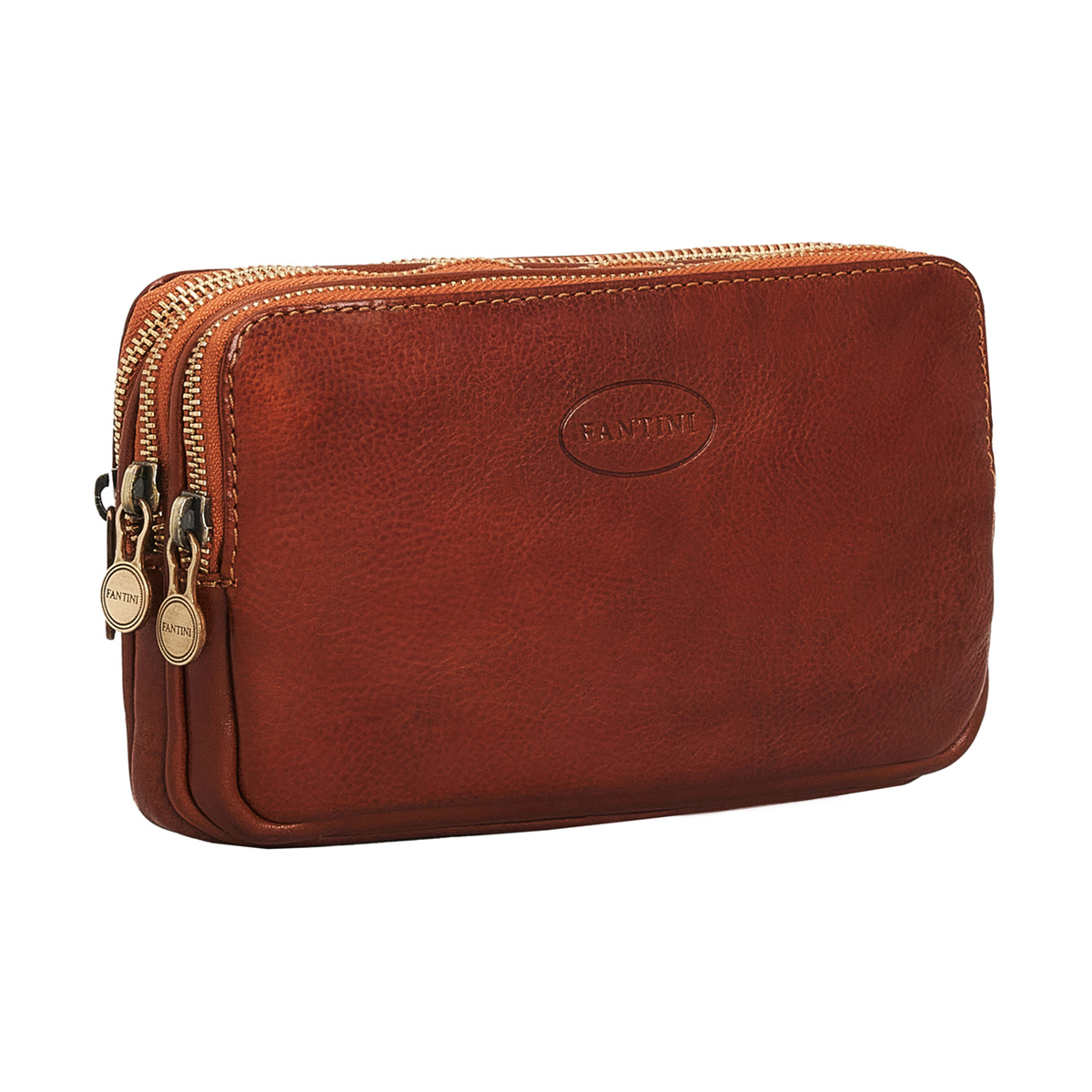 Trail, la pochette unisexe en cuir couleur miel avec un grand espace et des détails raffinés