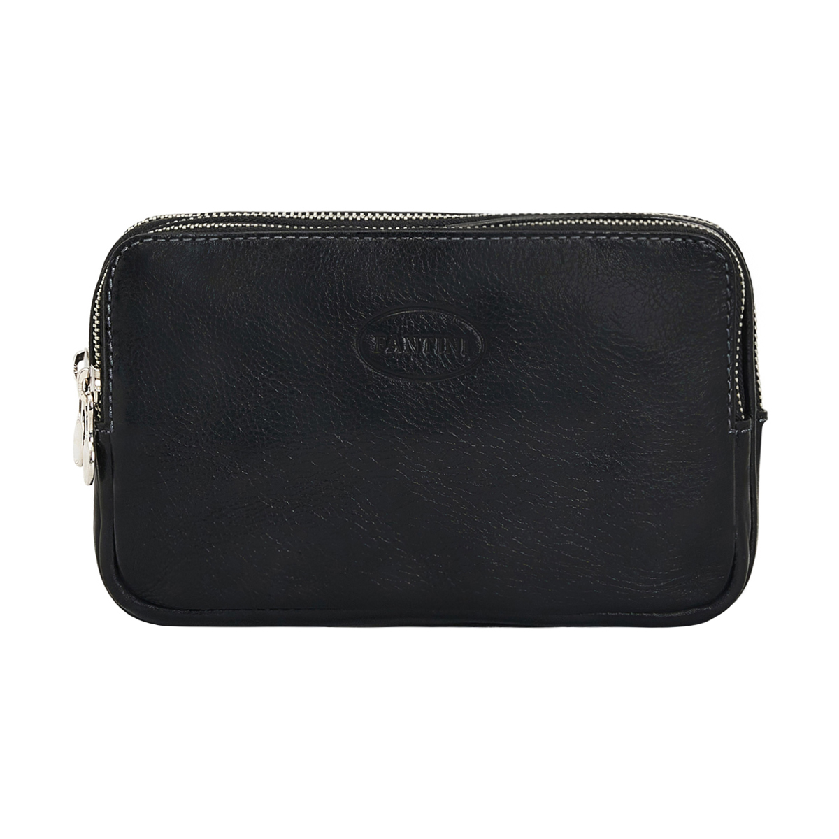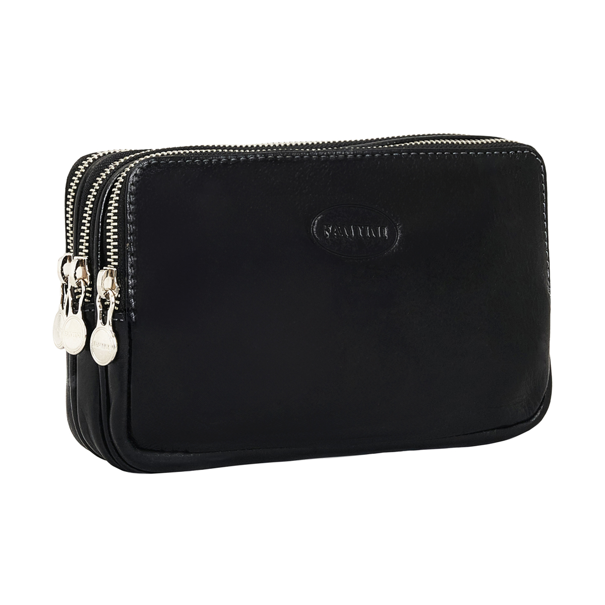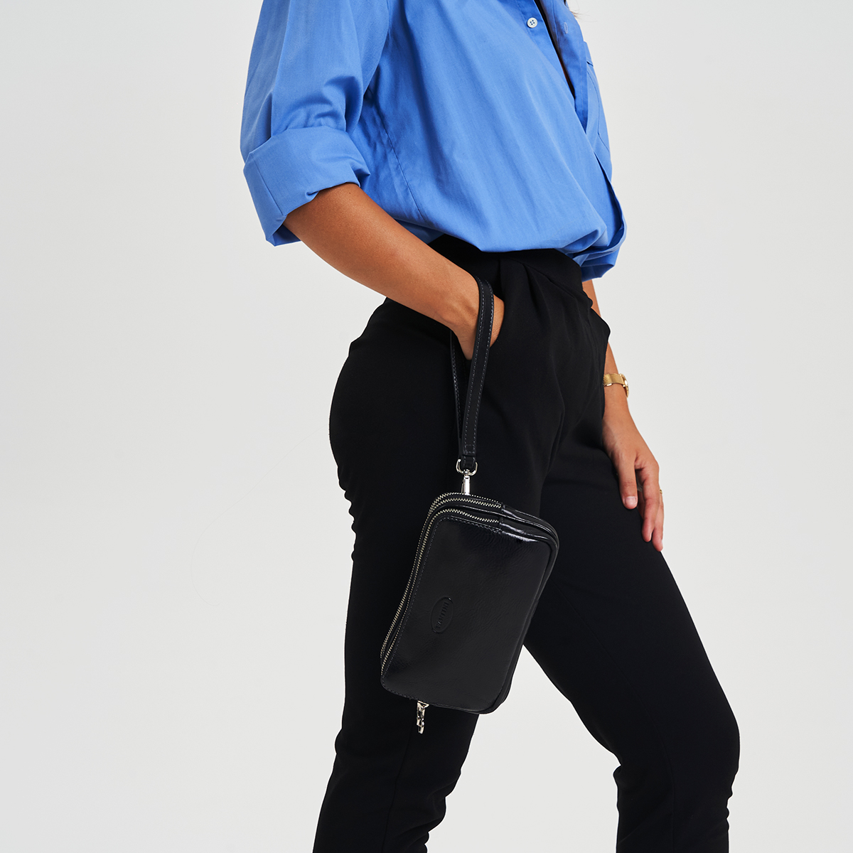 Pochette unisexe Trail en cuir noir : style italien avec plusieurs compartiments