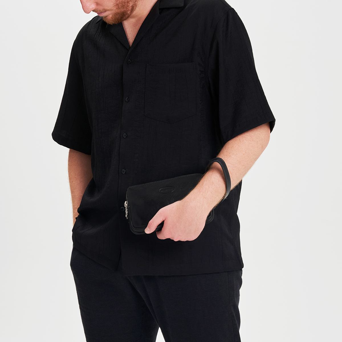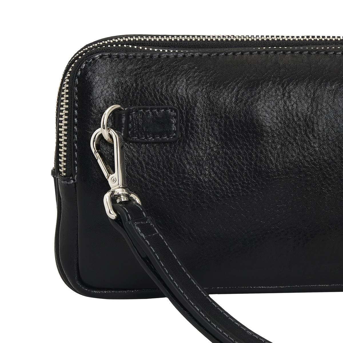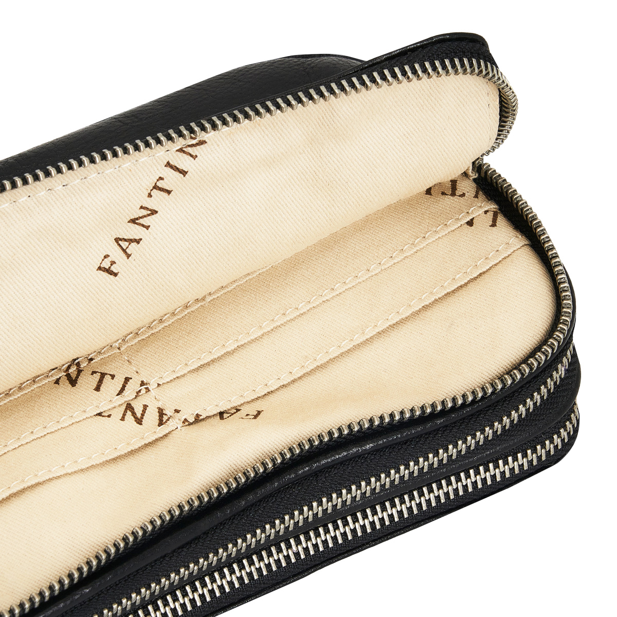 Pochette unisexe Trail en cuir noir : style italien avec plusieurs compartiments