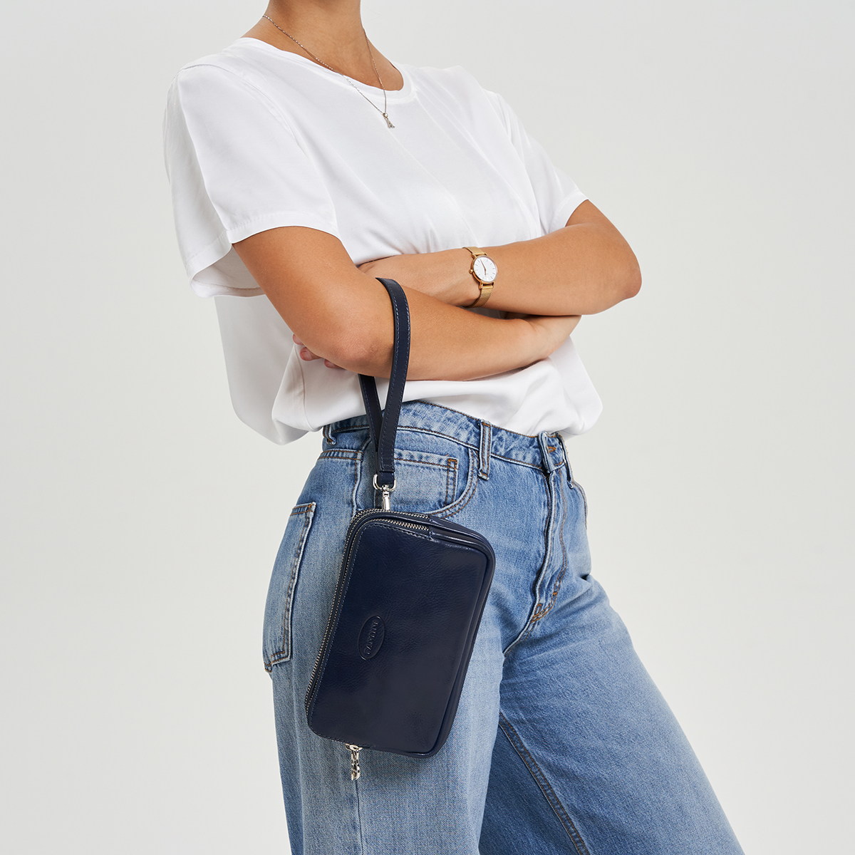Pochette Trail en cuir bleu italien : fonctionnalité, élégance et charme