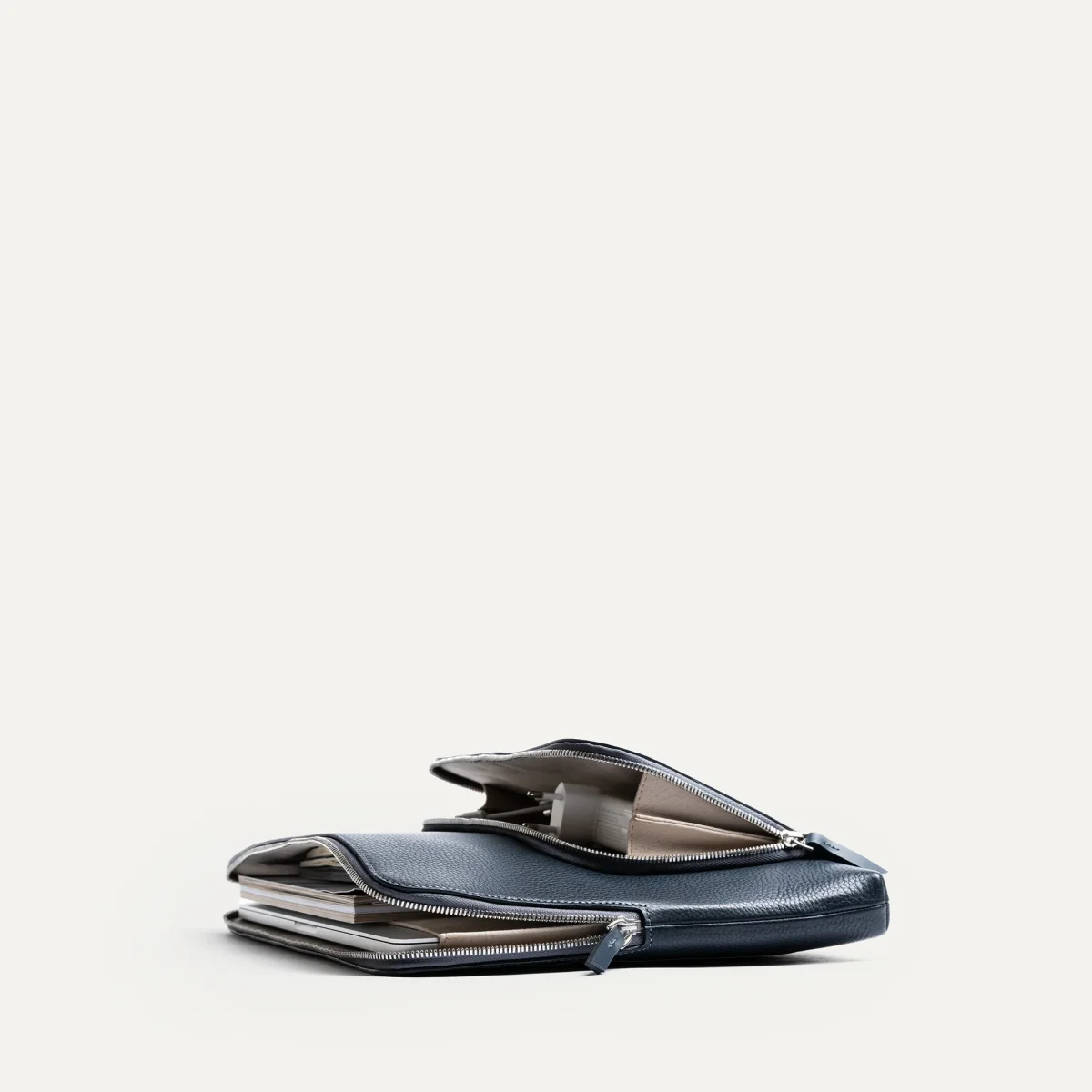 Pochette ordinateur Anna en cuir marine