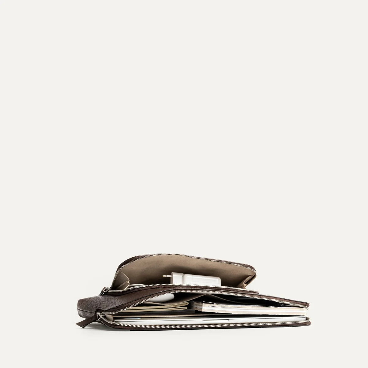 ANNA : une pochette où l’élégance s’harmonise à la praticité. Conçue pour s’intégrer naturellement dans votre quotidien, elle accueille les ordinateurs jusqu’à 16 pouces avec fluidité grâce à un cuir souple et pleine fleur qui s’adapte sans jamais perdre sa silhouette élégante.