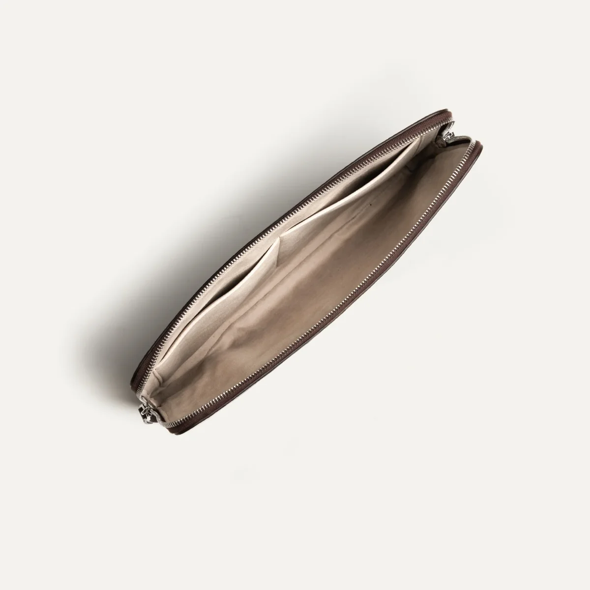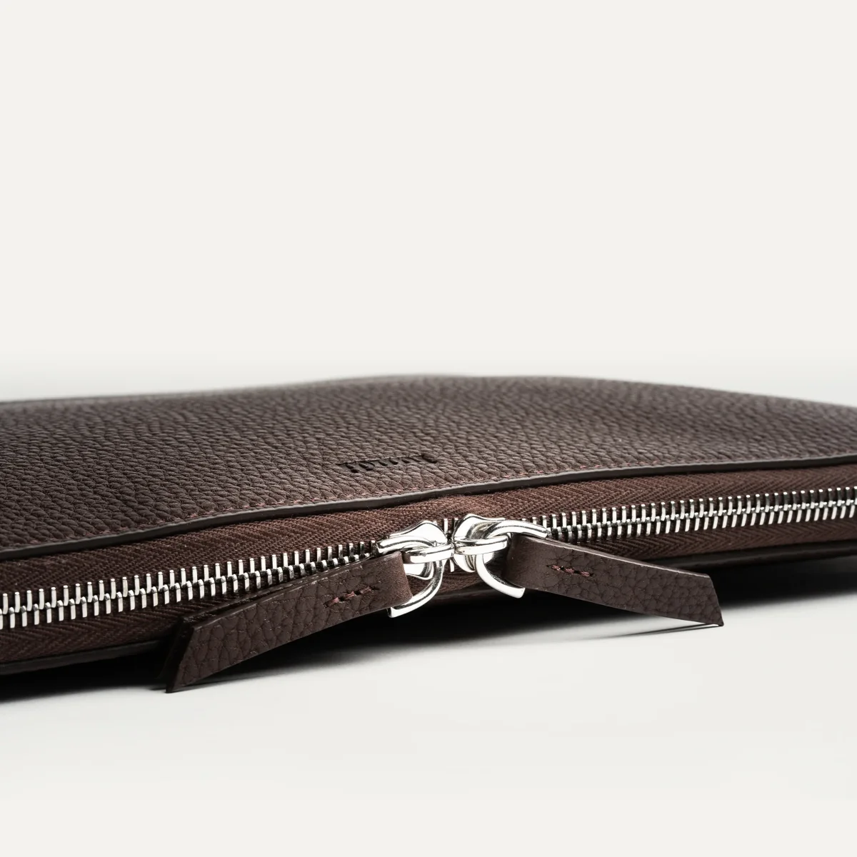 Confectionnée à la main dans notre cuir grainé pleine fleur, cette pochette bénéficie d’un tannage semi-végétal pour un aspect mat, naturel et durable. L’intérieur est entièrement doublé en Alcantara, une matière douce et protectrice.