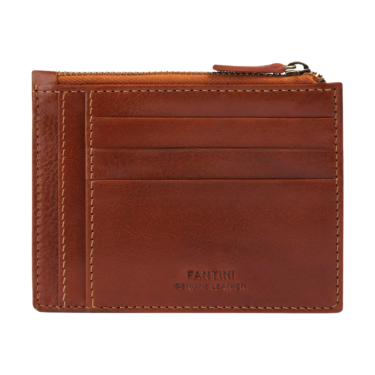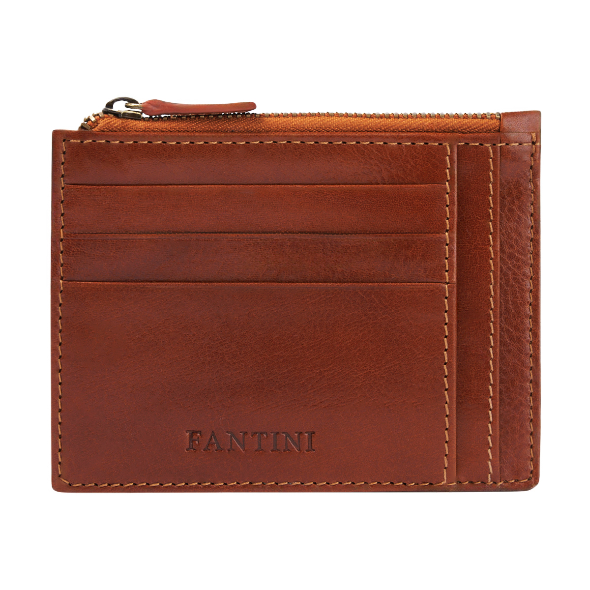 Porte-cartes Pisa en cuir toscan miel avec fermeture zippée