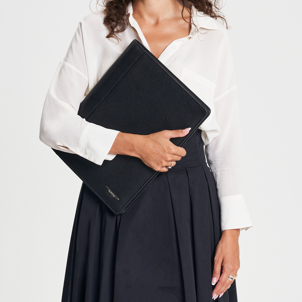 Les femmes et les hommes travaillant dans un bureau ont besoin d’un accessoire à la fois pratique et raffiné pour organiser documents, contrats et autres papiers. Notre maroquinerie vous présente le porte-documents en cuir Toronto. Cet article est confectionné avec du cuir de première qualité provenant d’Italie, soigneusement travaillé pour obtenir l’élégant effet martelé typique. Ce porte-documents noir allie sophistication et fonctionnalité, avec un format A4, une fermeture éclair latérale et un petit triangle Fantini gravé en argent. L’intérieur revêtu de coton dispose de trois poches dédiées aux cartes de crédit en cuir, ainsi que plusieurs compartiments dont une poche zippée. De plus, il comprend également un espace pour un bloc-notes A4. Cet accessoire arbore fièrement le label Made in Italy car il est élaboré par les meilleures maisons de maroquinerie florentines. Par ailleurs, ce porte-documents séduit tous ceux qui apprécient les articles authentiques en cuir grâce à sa qualité exceptionnelle et son esthétique soignée.