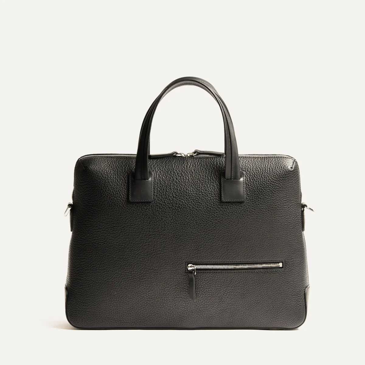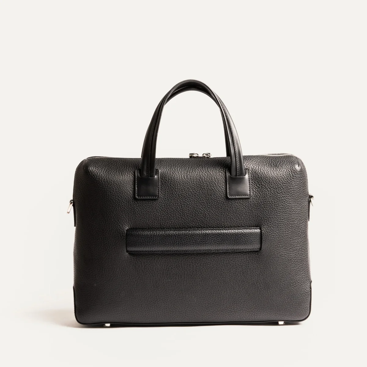 Les deux pinces discrètes situées dans les angles supérieurs permettent d’optimiser le volume intérieur sans altérer la silhouette épurée du sac.