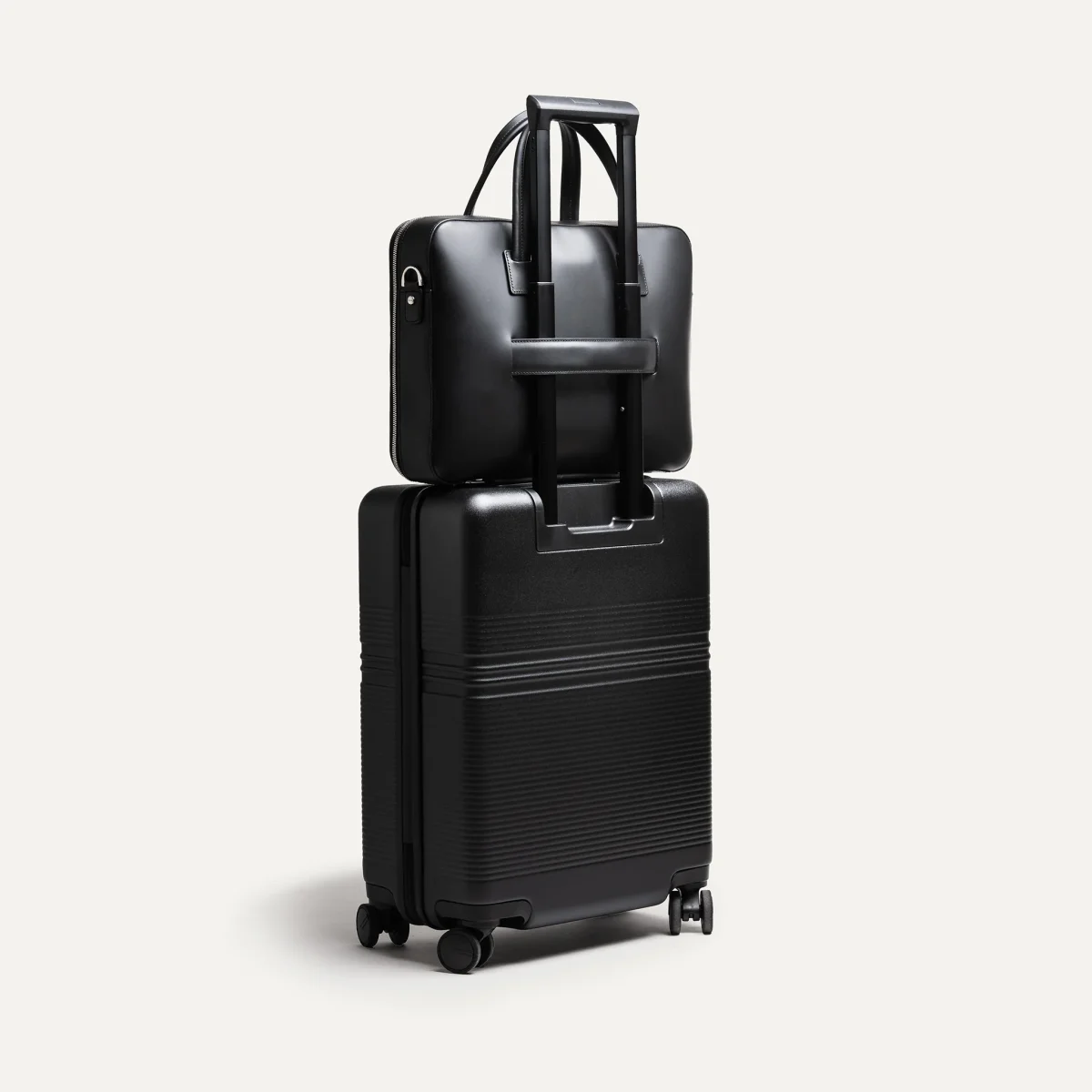 À l’arrière du sac, une sangle valise rétractable et aimantée permet de fixer facilement votre briefcase sur un bagage à roulettes. Un atout essentiel pour les déplacements professionnels.