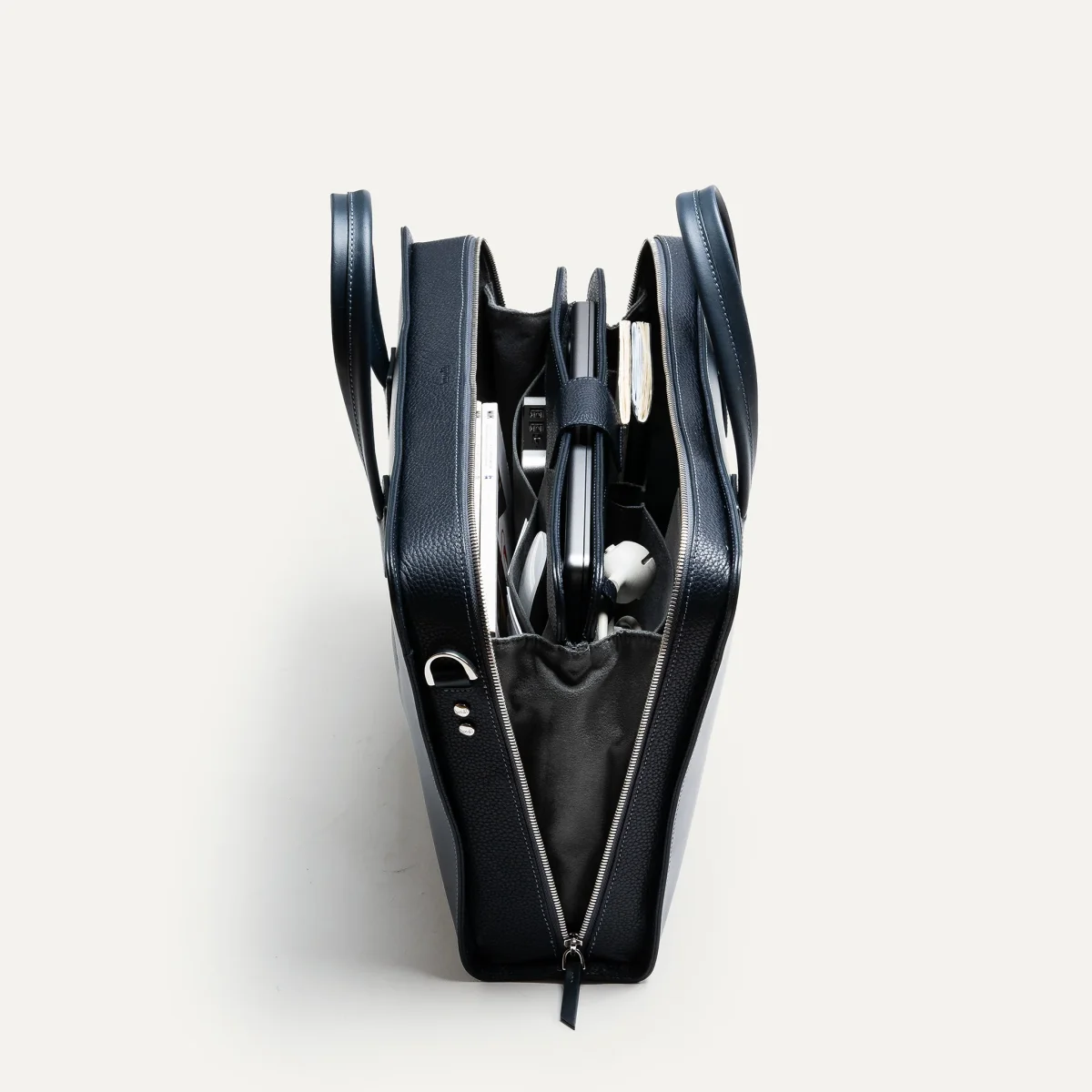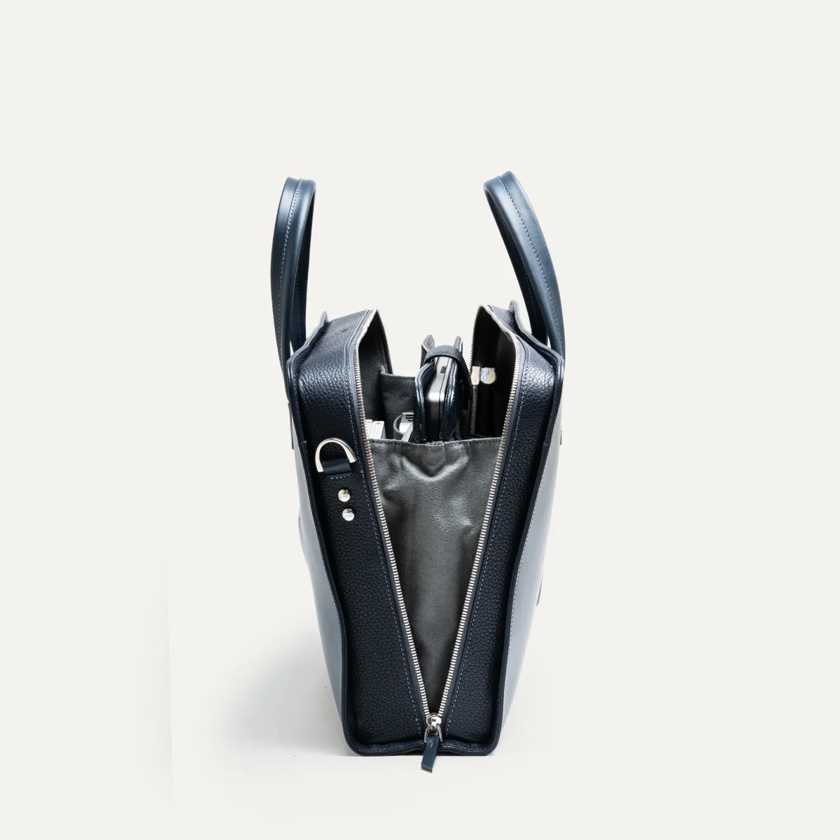Avec ce porte-documents couleur marine, nous avons voulu allier fonctionnalité innovante et élégance raffinée. Sa poche centrale en feutrine accueille facilement votre ordinateur portable ou tablette, de 13 à 16 pouces, pour une protection maximale.