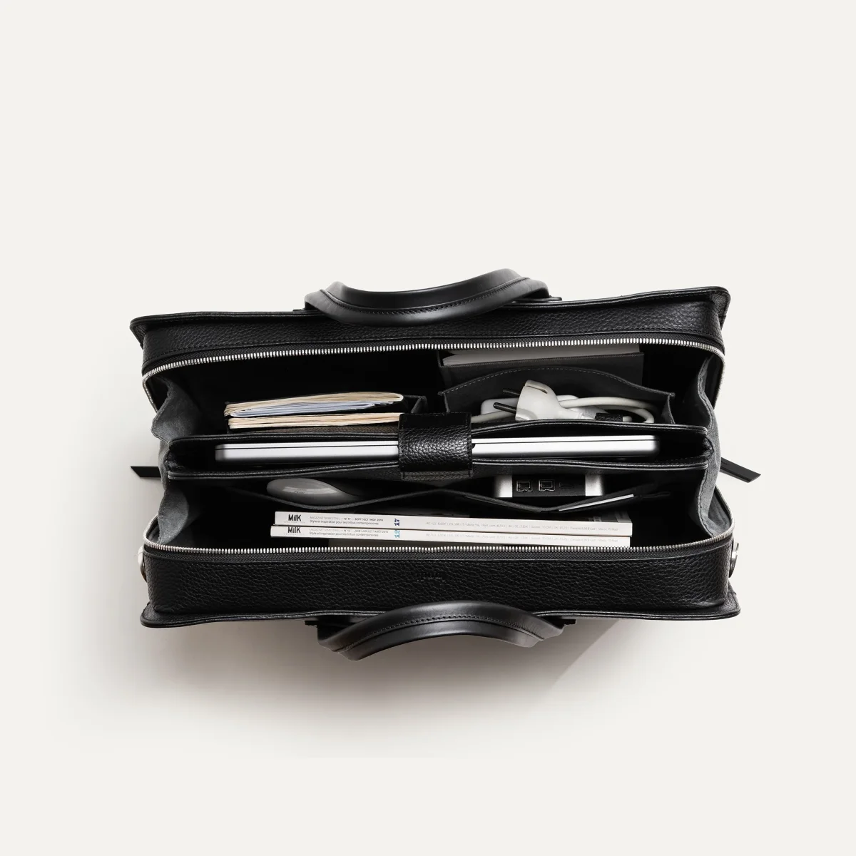 Le porte-documents VICTOR a été pensé pour optimiser les rangements de tous vos essentiels du quotidien. Chaque objet trouve sa place dans des compartiments pratiques et faciles d’accès.