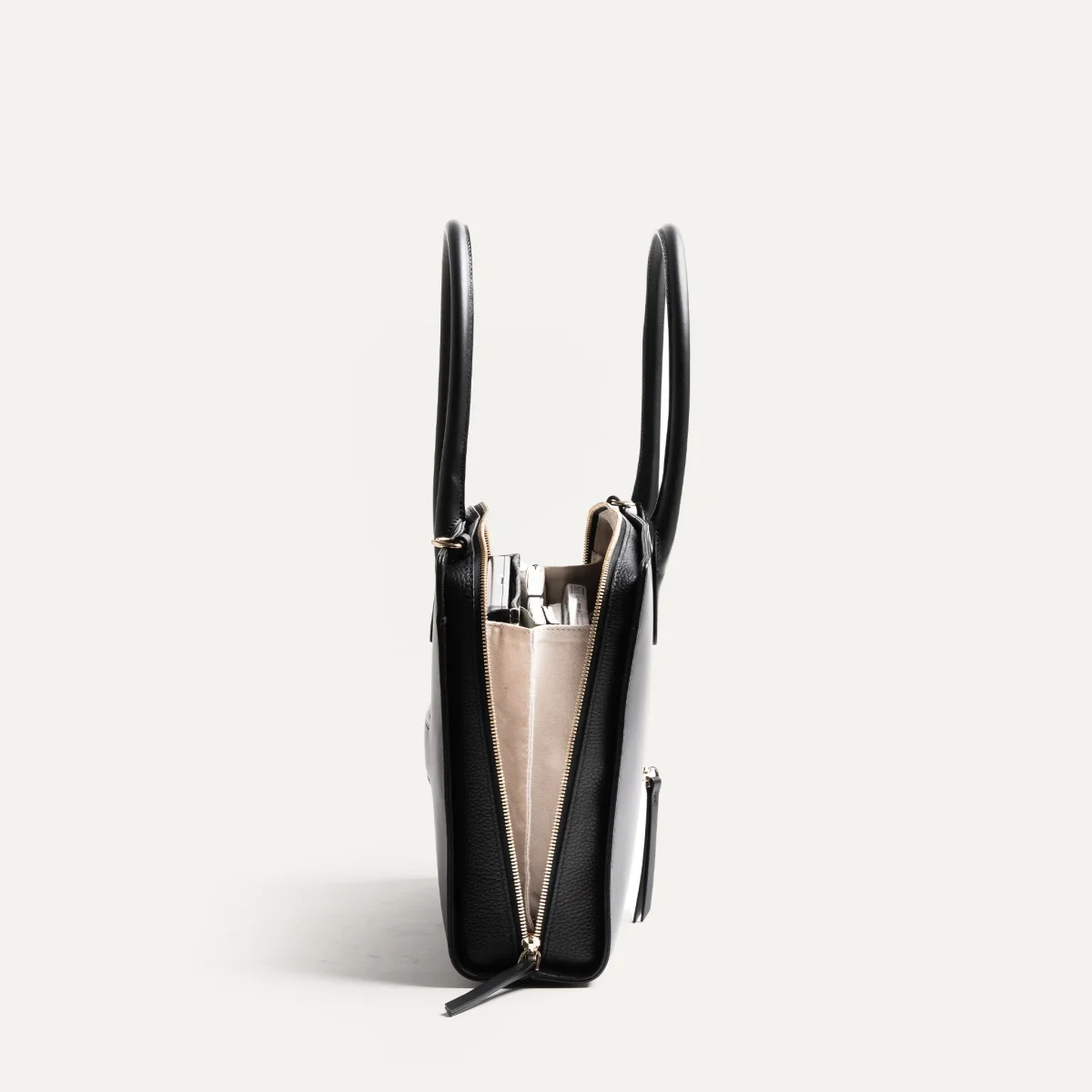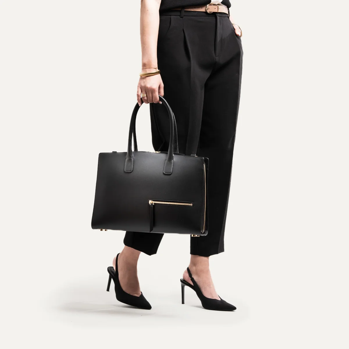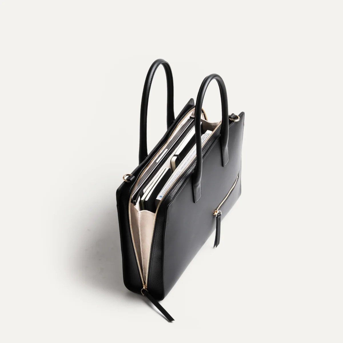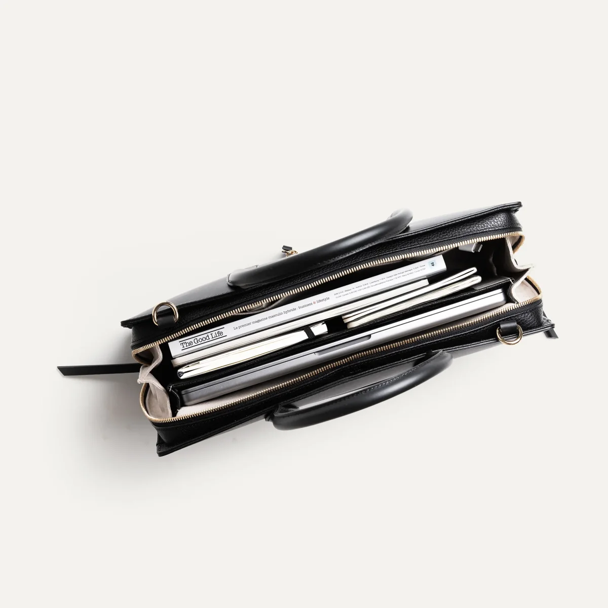 Un porte-documents compact mais résolument fonctionnel, idéal pour celles qui cherchent une solution élégante et pratique pour leurs journées de travail ou leurs voyages express.