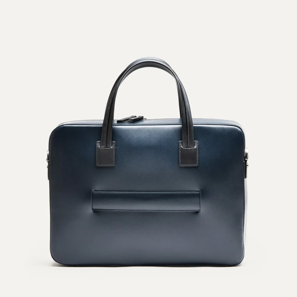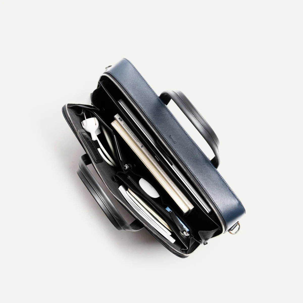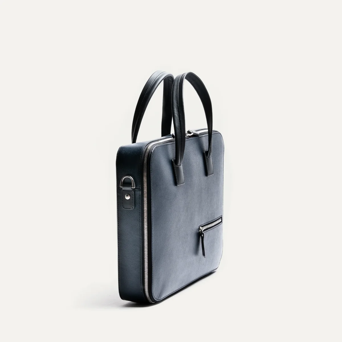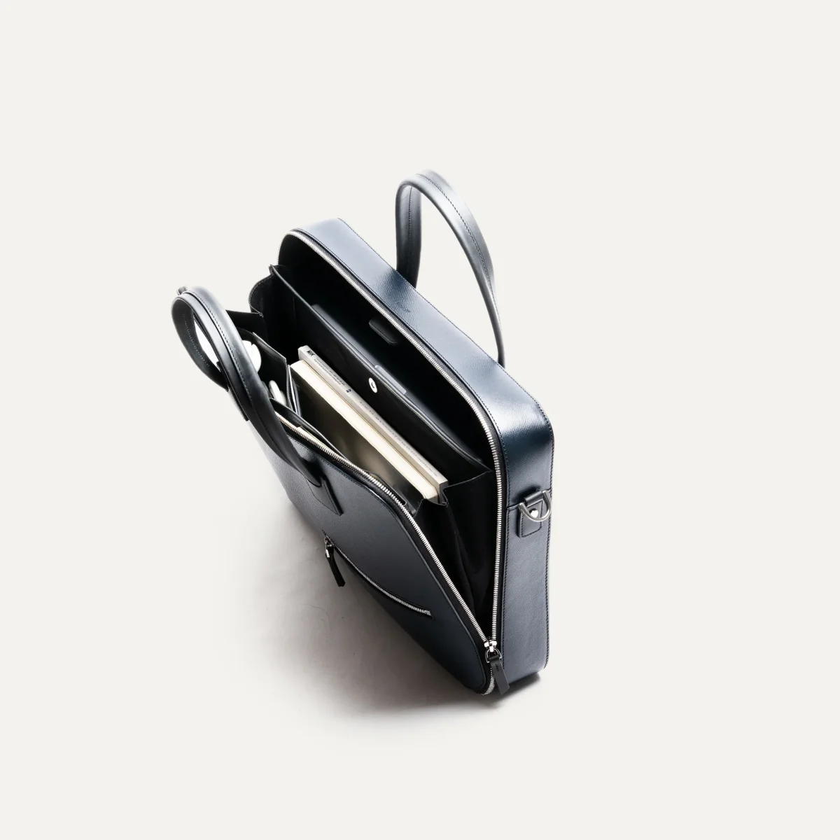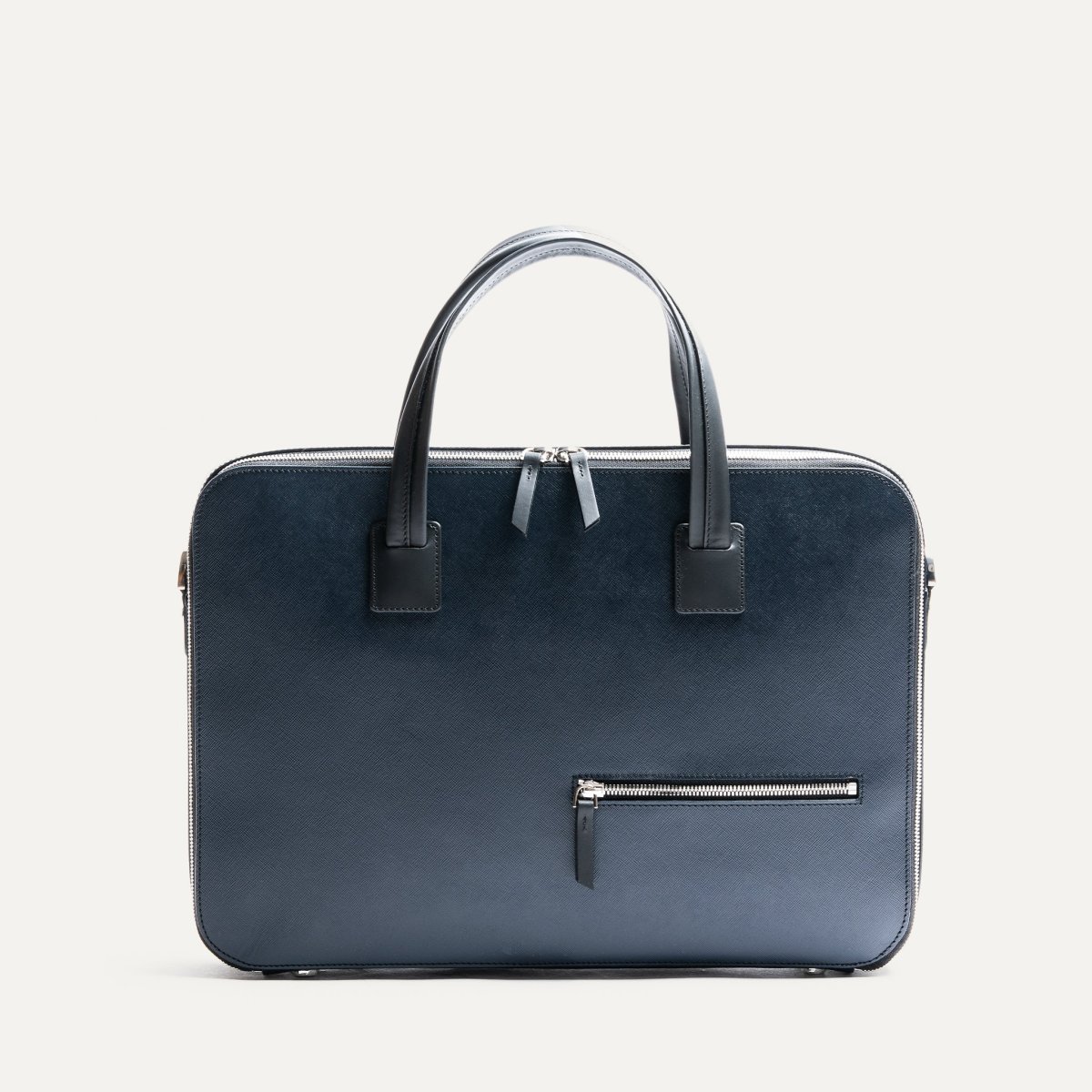 Ce porte-documents PAOLO se décline ici dans un bleu marine profond et intense. Une teinte subtile et masculine qui offre une belle alternative au noir, tout en conservant un style intemporel et facile à associer à l’ensemble de votre vestiaire professionnel.