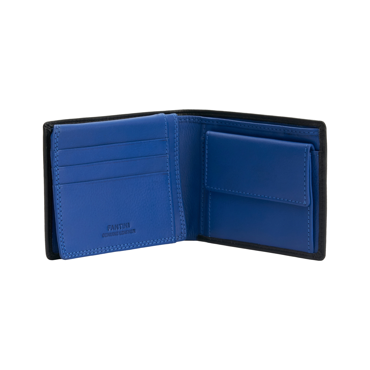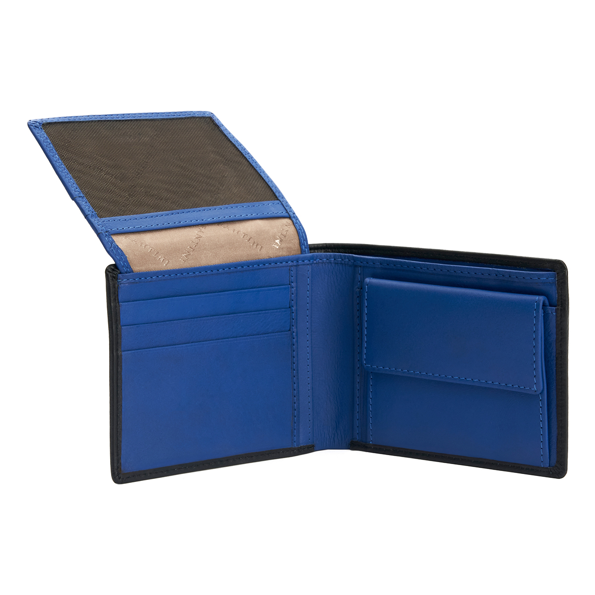 Portefeuille Cromo en cuir noir et bleu, élégance bicolore