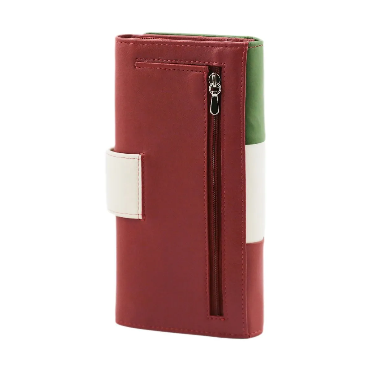 Le portefeuille en cuir Italia est lun des plus complets de la ligne avec un drapeau tricolore extérieur, spacieux, confortable et chic. Orné de coutures contrastées rouges, qui reprennent la couleur des inserts intérieurs du portefeuille. Cuir naturel, travail artisanal et utilisation de matériaux de haute qualité rendent cet article spécial.