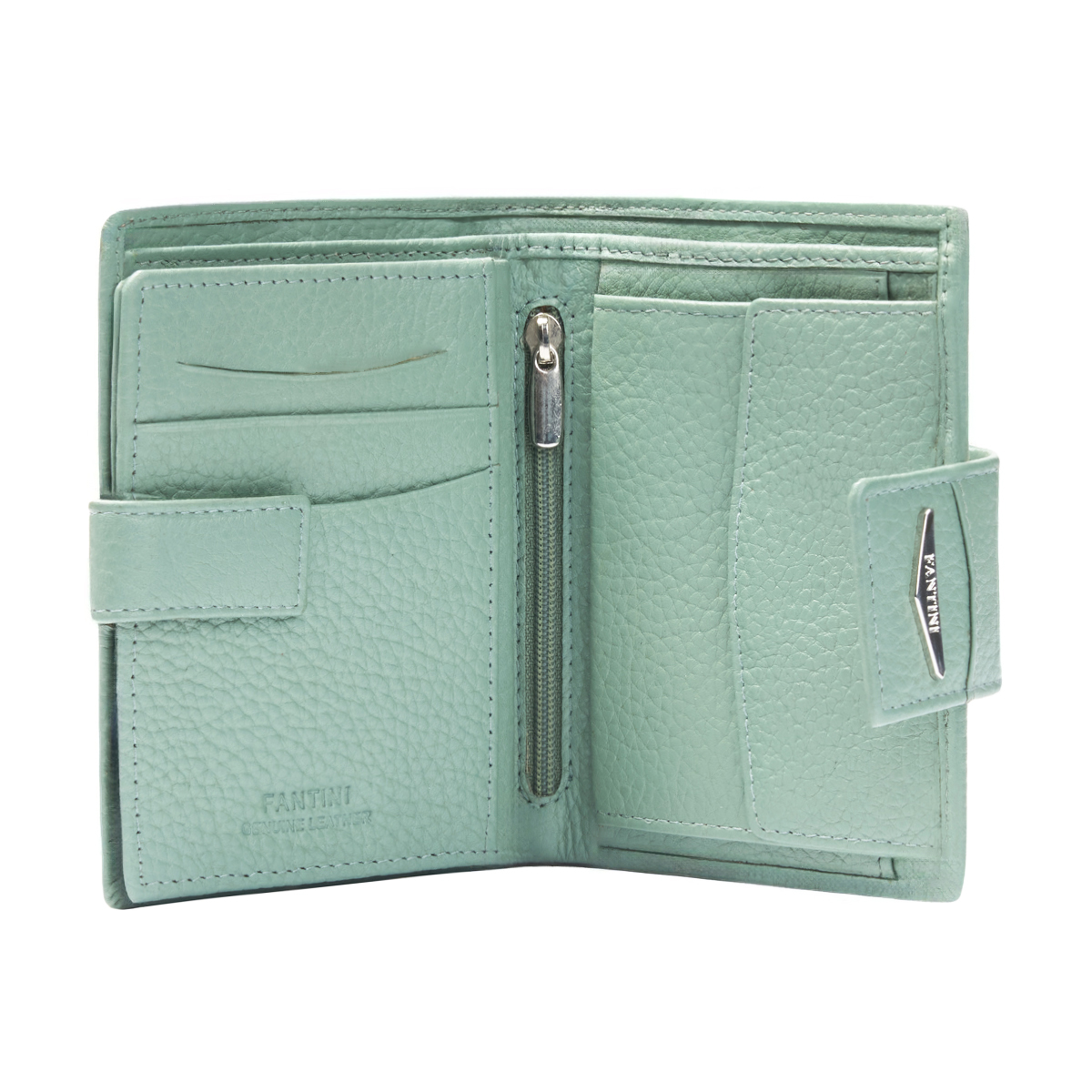 La couleur vert d’eau est une nuance raffinée et apaisante, idéale si tu recherches un ton original tout en étant facile à associer. Ce portefeuille utilise du cuir pleine fleur martelé pour assurer durabilité et une texture sophistiquée, tandis que l’intérieur en coton rend l’ouverture plus agréable et protège les compartiments. La capacité est astucieusement conçue : 9 emplacements pour cartes, 7 espaces pour documents de grande taille et 2 poches pour billets, te permettant de tout organiser sans encombrement. Le porte-monnaie classique avec bouton métallique est sécurisé et rapide d’accès, parfait pour un usage quotidien. La fermeture à languette ainsi que le triangle argenté gravé ajoutent une touche discrète mais éclatante au devant du produit. Inclus dans la boîte ornée du logo Fantini, il bénéficie d’une garantie de 24 mois et fait l’objet d’une fabrication artisanale.