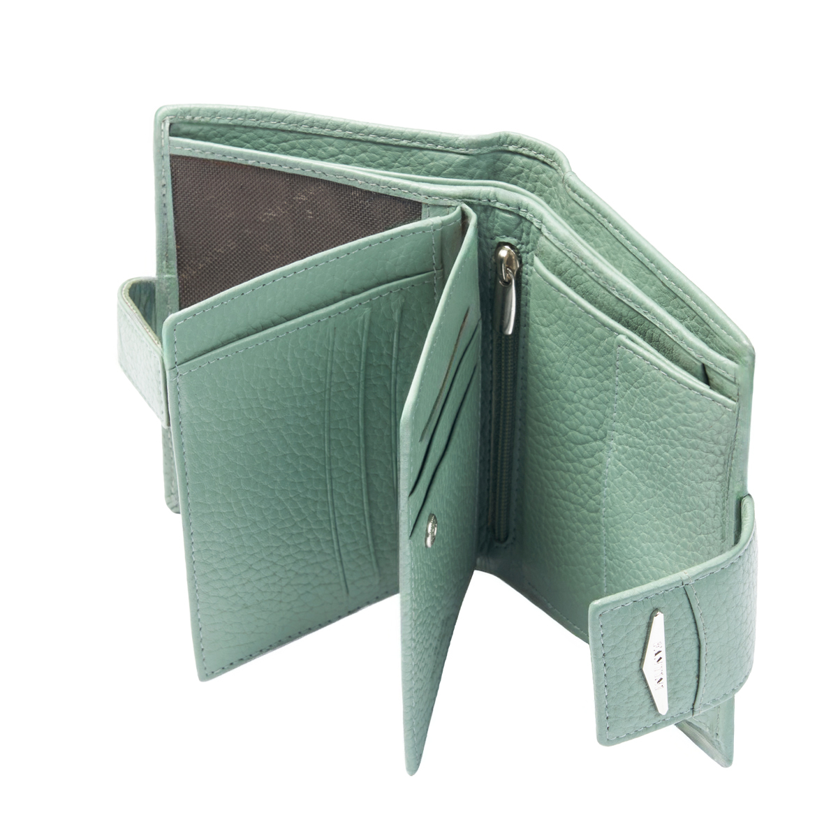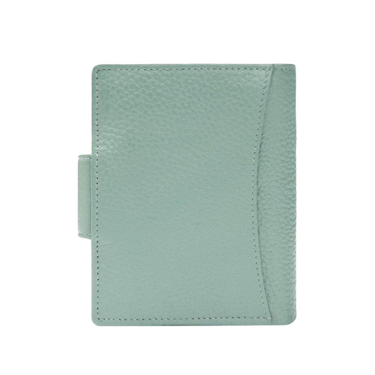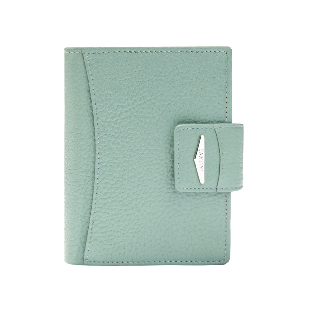 Vert d’eau élégant : portefeuille en cuir véritable embossé avec des détails métalliques
