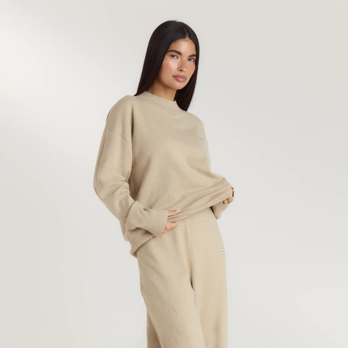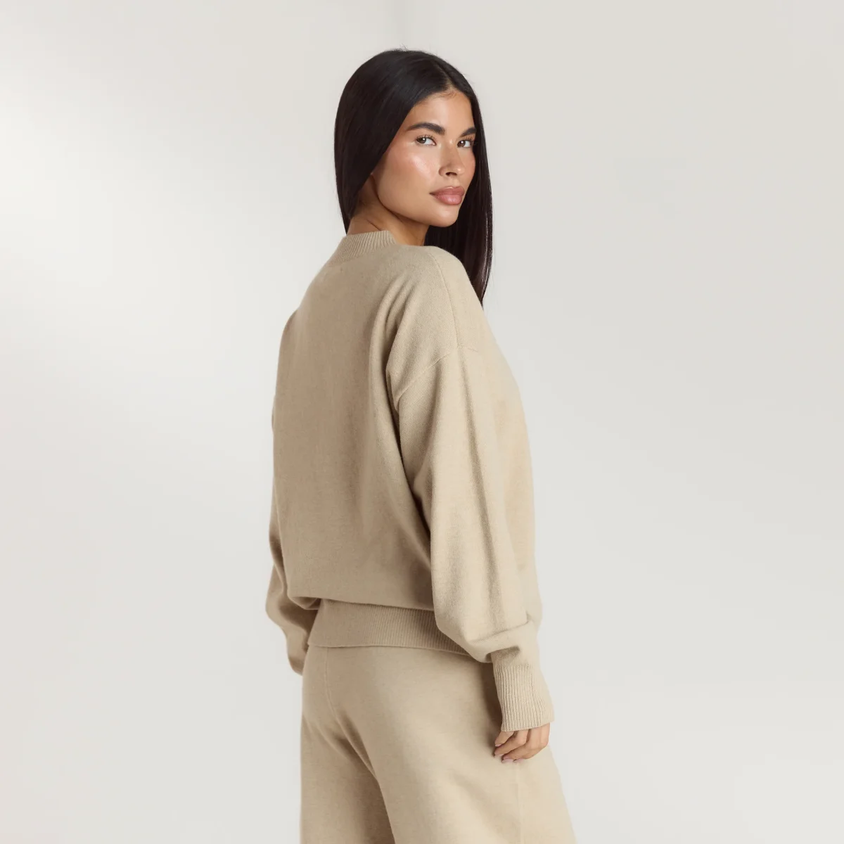 - Poignets larges en maille côtelée