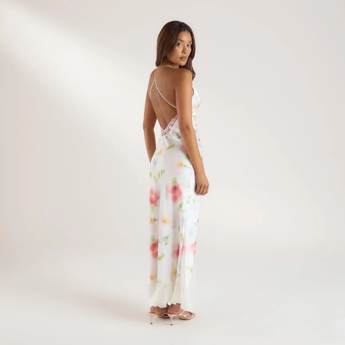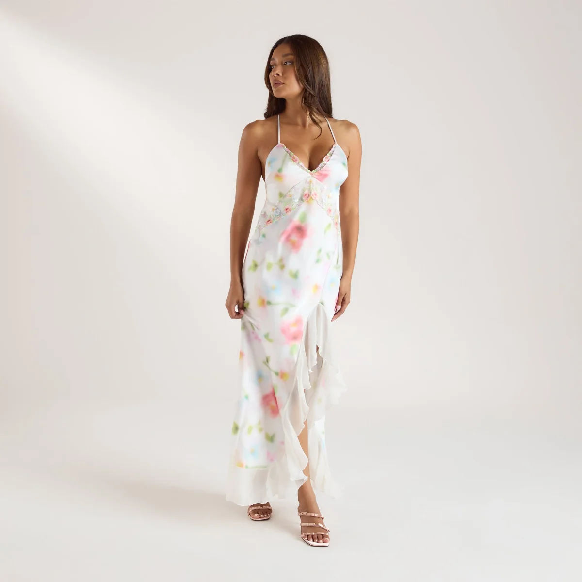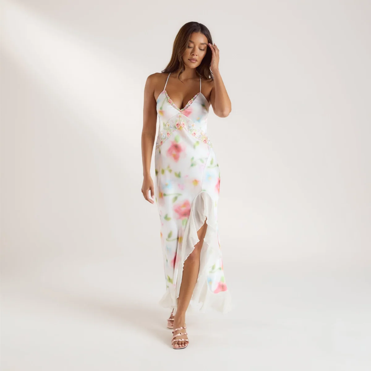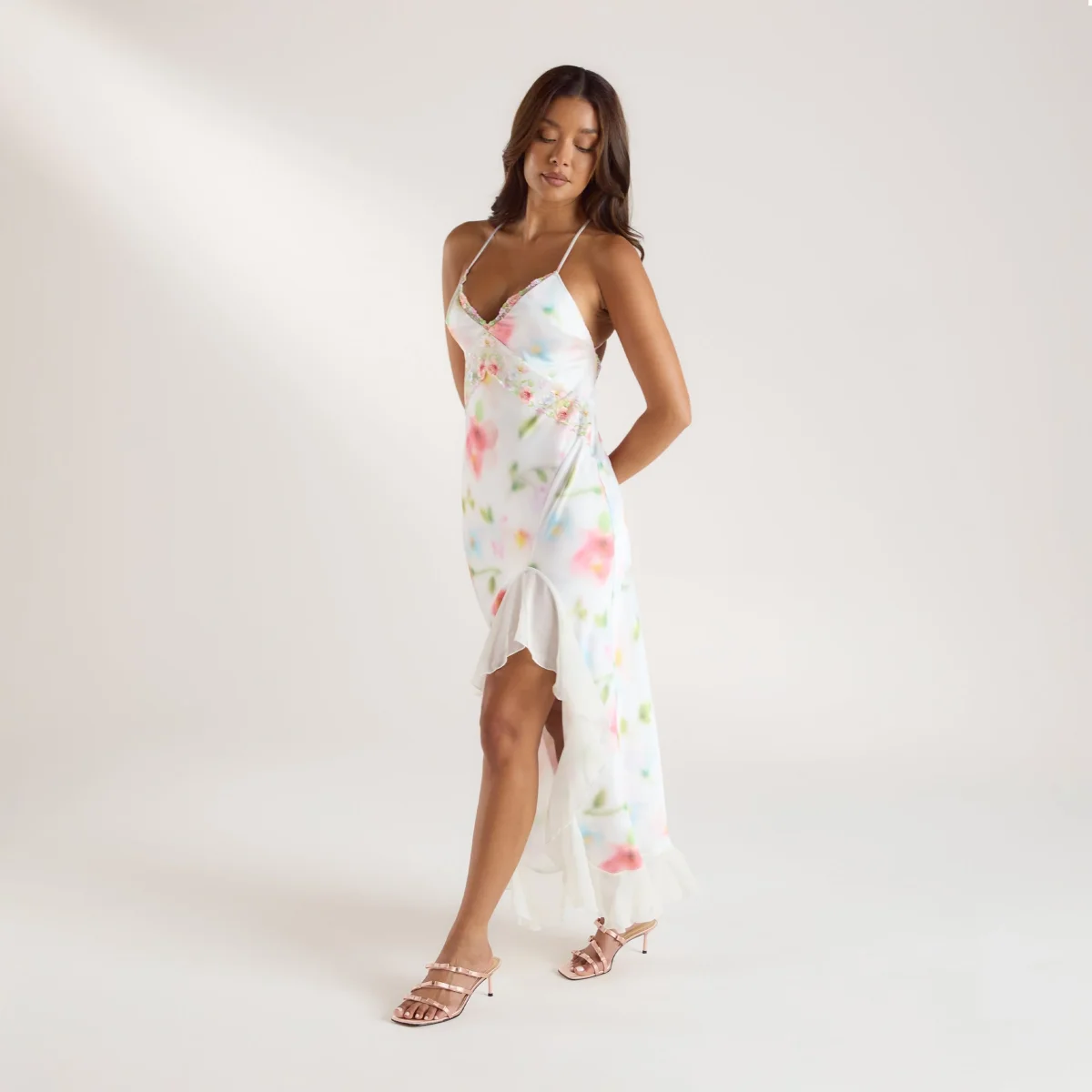 - Coupe ajustée au niveau du buste et de la taille avec jupe fluide