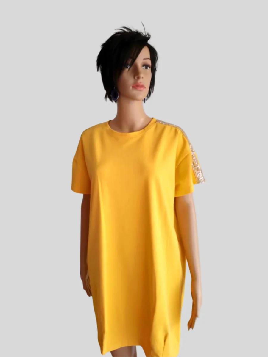 Robe-T-Shirt JAUNE MOUTARDE à paillettes