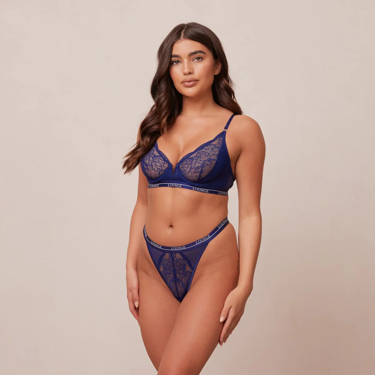 Notre ensemble Royal présente un plongeon sexy en fil ‘V’ au centre du soutien-gorge combiné à une douce dentelle géométrique extensible. Vous vous prélasserez comme une reine en un rien de temps.
