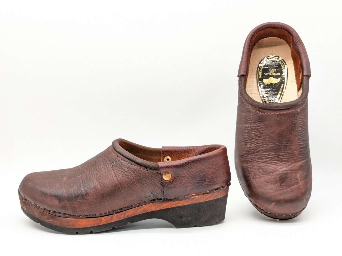 – Semelle en caoutchouc pour une marche anti-dérapante, silencieuse et confortable – semelle bois (aulne) avec voute plantaire à l’intérieur – dessus cuir Pull up – doublure cuir – délai de fabrication + livraison environ 3 semaines.