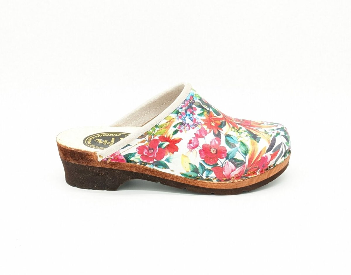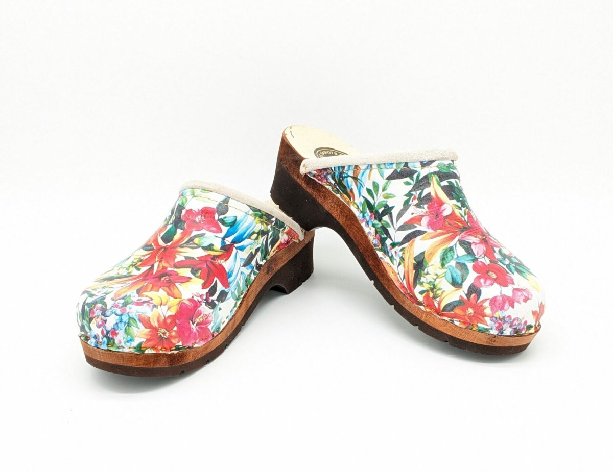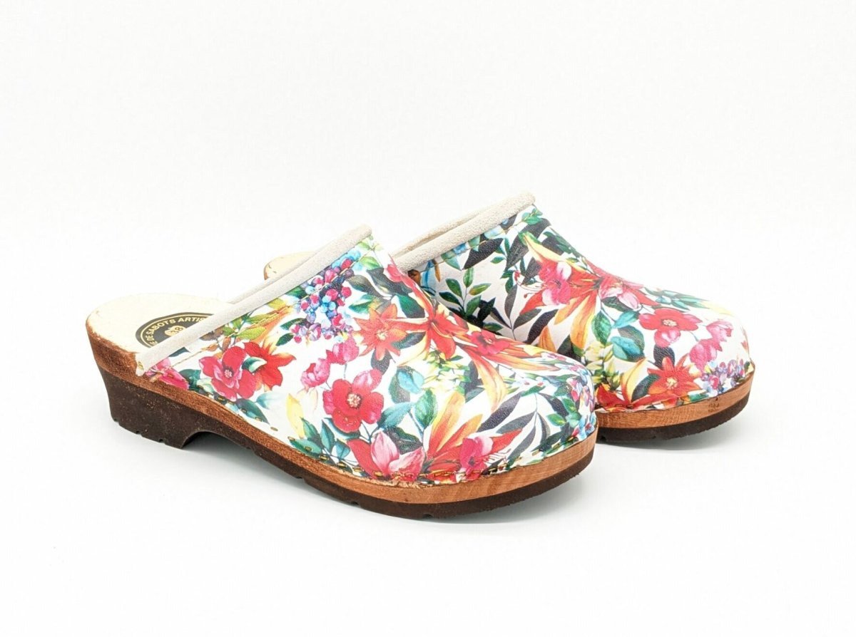 Ce sabot est en cuir de vachette imprimé fleurs. Fabriqués en France, nos produits sont confectionnés artisanalement dans notre atelier en Mayenne. Nous prêtons une grande attention à la qualité du cuir et nous fournissons en Espagne.