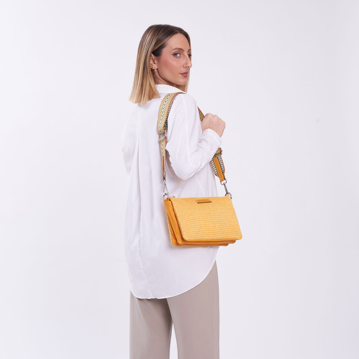 Le sac Susanna en cuir et en raphia jaune est conçu pour la femme qui souhaite se démarquer avec un accessoire au design élégant et raffiné. Sa fusion de matériaux naturels et de finitions délicates lui confère une allure estivale et chic, idéale pour apporter une touche de fraîcheur à sa garde-robe. La structure en raphia tressé offre un aspect léger et aérien, parfait lors des journées ensoleillées, tandis que les détails en cuir marron sur les côtés et le zip ajoutent une note d’élégance durable. À l’intérieur, le sac Susanna dispose d’une vaste poche principale pour accueillir tous vos essentiels quotidiens ainsi qu’une pochette zippée pour garder précieusement vos objets personnels. Le zip assure sécurité tout en offrant praticité, faisant du sac non seulement un accessoire stylé mais aussi fonctionnel. Cet article convient parfaitement à celles qui recherchent l’harmonie entre style moderne et utilité pratique, que ce soit dans un cadre décontracté ou lors d’événements plus raffinés. Emportez-le avec vous pendant une promenade au bord de la mer, lors d’un après-midi shopping ou durant une soirée estivale, laissez-le exprimer votre goût distinctif avec assurance./span>