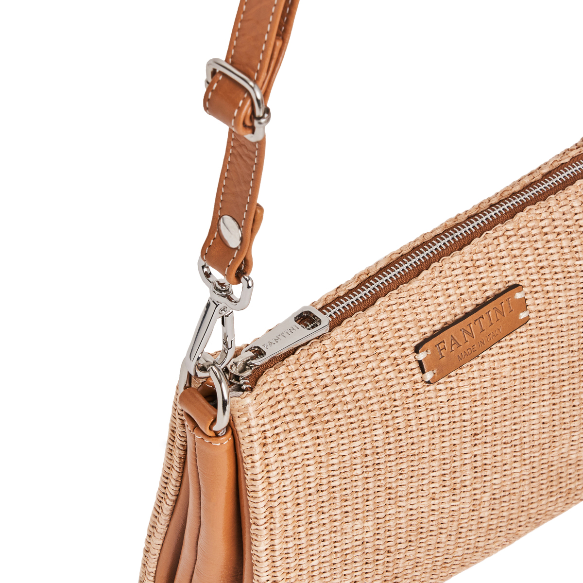 Chic naturel en cuir et raphia de la petite sacoche Susanna