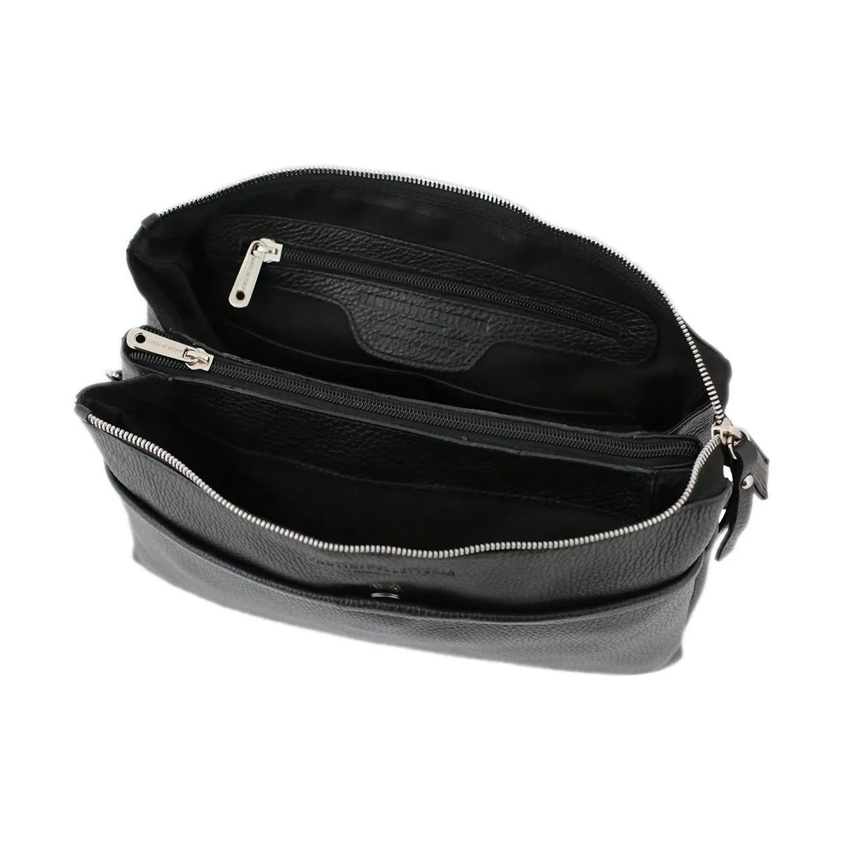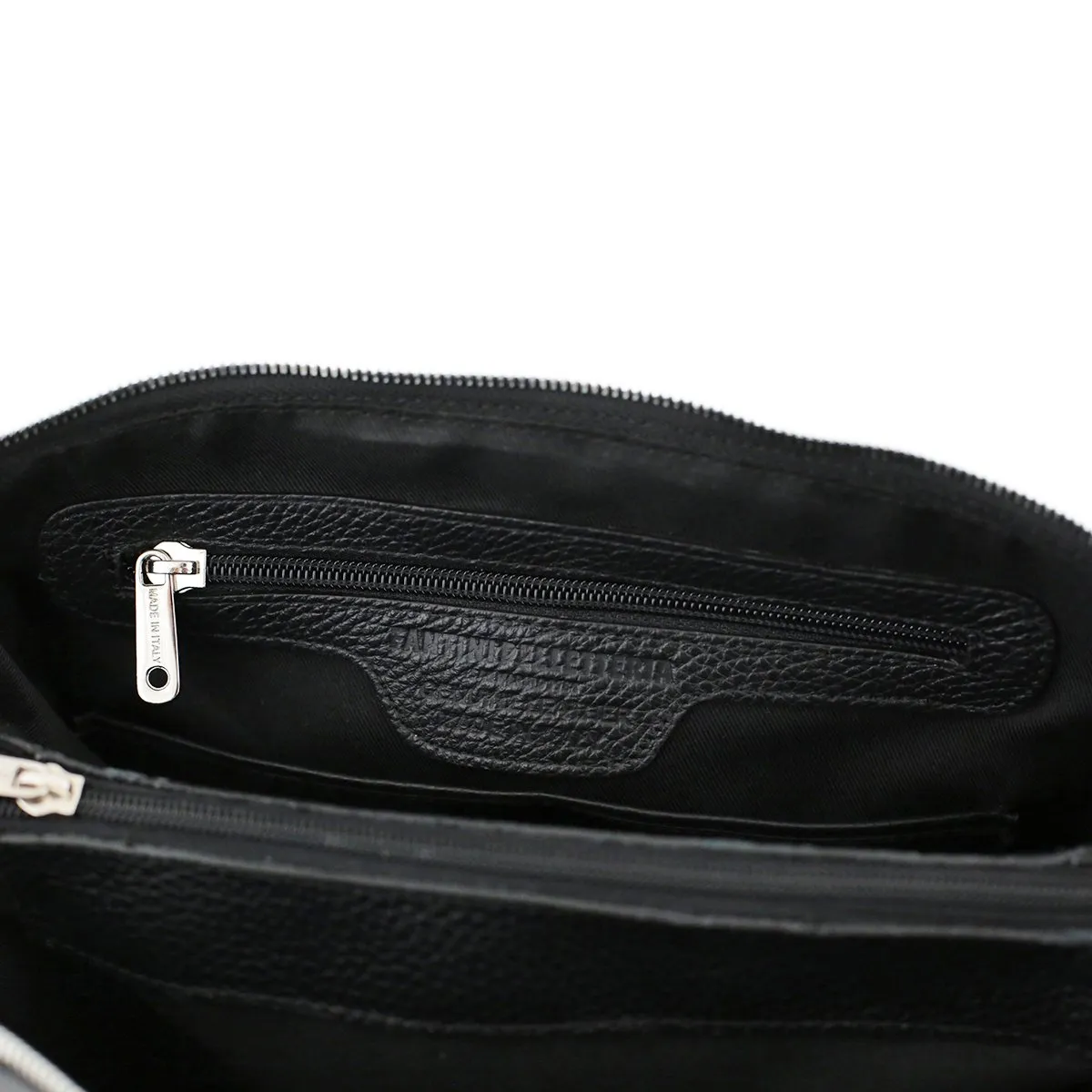 La pochette Roma est un sac à bandoulière pour femme fabriqué en cuir véritable martelé, élaboré selon des techniques artisanales soigneusement maîtrisées. Composée de trois compartiments pratiques, elle convient parfaitement aux femmes qui recherchent espace et organisation dans leur sac. La texture distinctive du cuir martelé lui confère une robustesse et une longévité remarquables. C’est le modèle noir par excellence, adapté à toutes les occasions et s’associant avec n’importe quel type de tenue. Le logo de Fantini Pelletteria apposé sur ce sac lui donne un caractère unique et en fait une pièce rare dans l’univers de la mode haut de gamme. Ce qui rend cet accessoire particulièrement précieux est le savoir-faire d’artisans qualifiés qui, chaque jour avec passion, créent des sacs en maroquinerie italienne raffinée tout en veillant à chaque détail lors des finitions manuelles des coutures. Cette pochette peut être portée partout car elle complète élégamment tous les looks avec simplicité et chic.