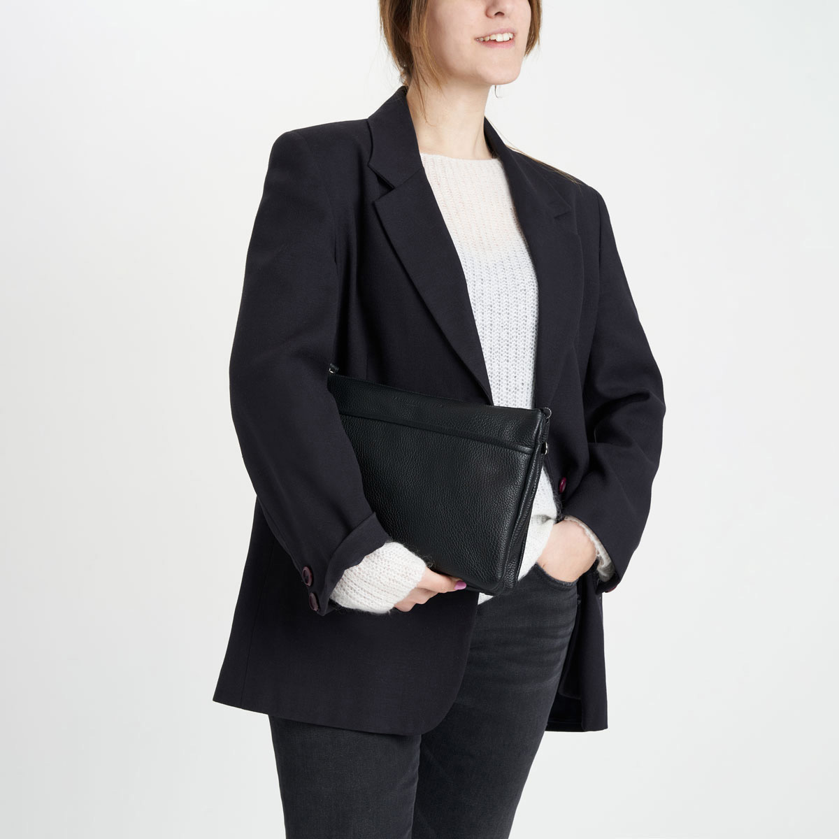 Sac à bandoulière en cuir noir texturé