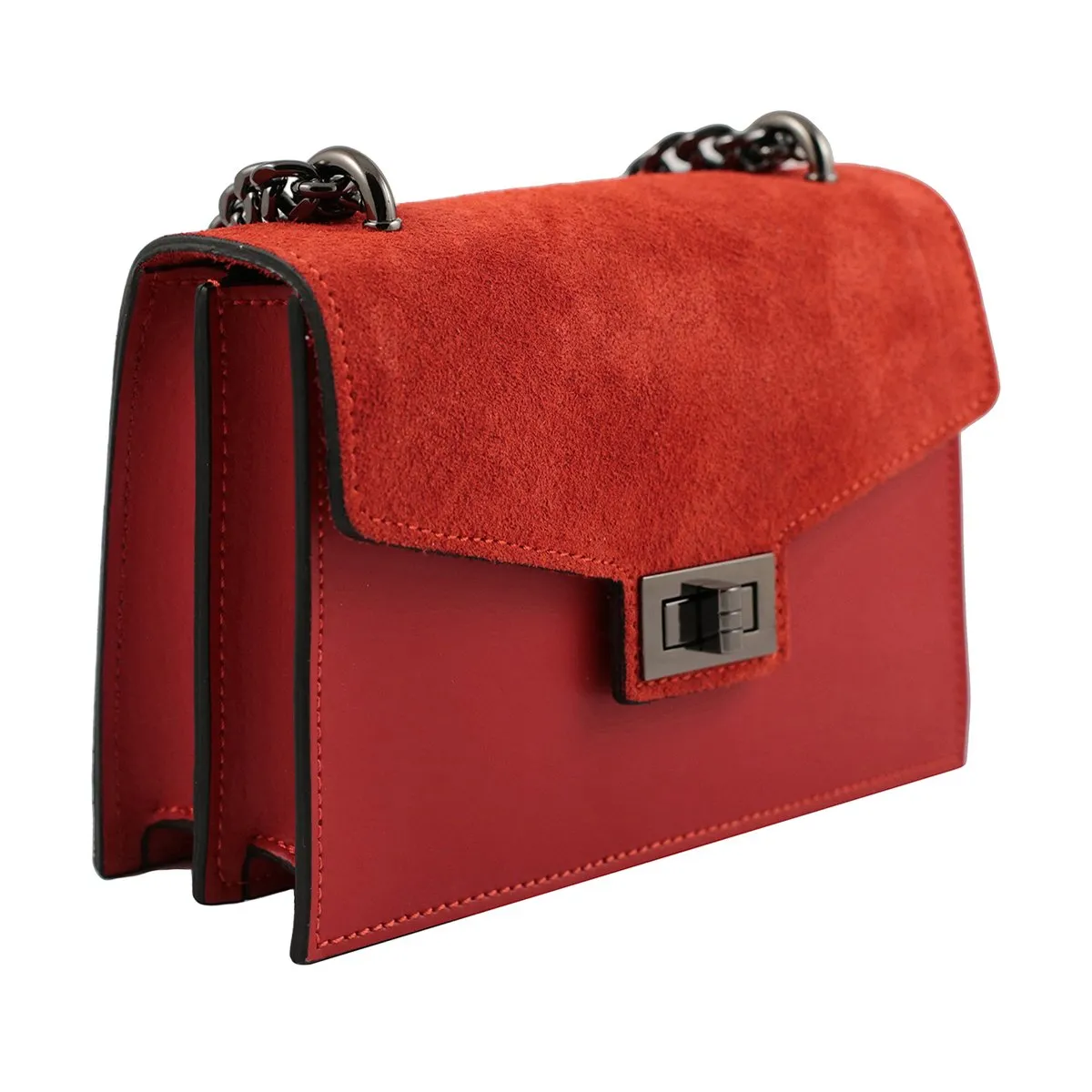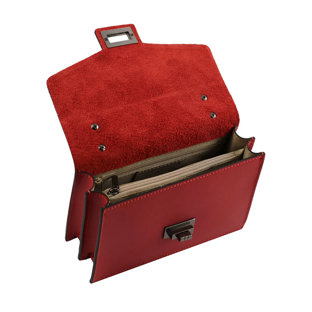 Cette sac incarne une alliance parfaite entre qualité et esthétique, fruit d’un savoir-faire artisanal made in Italy qui utilise du cuir de première qualité à la texture brossée et retournée. Le système de fermeture à pression facilite l’utilisation pratique et agréable de ce modèle, tandis que sa construction rigide assure sécurité et longévité. La bandoulière en métal réglable permet d’adapter le port selon les préférences personnelles, tandis qu’à l’intérieur, un revêtement en coton doux orné du motif Fantini propose trois compartiments dont un avec zip ainsi qu’une petite poche zippée. La teinte rouge insuffle énergie et éclat à chaque tenue pour n’importe quelle occasion. L’ensemble des caractéristiques confère à cet article une qualité supérieure alliée à une beauté remarquable qui saura attirer tous les regards.