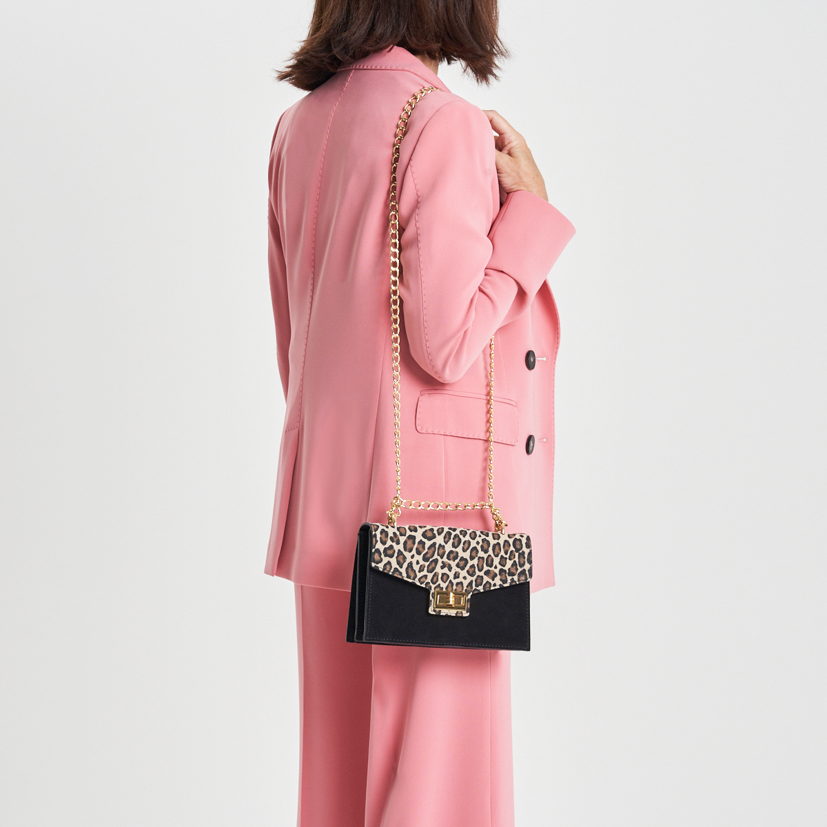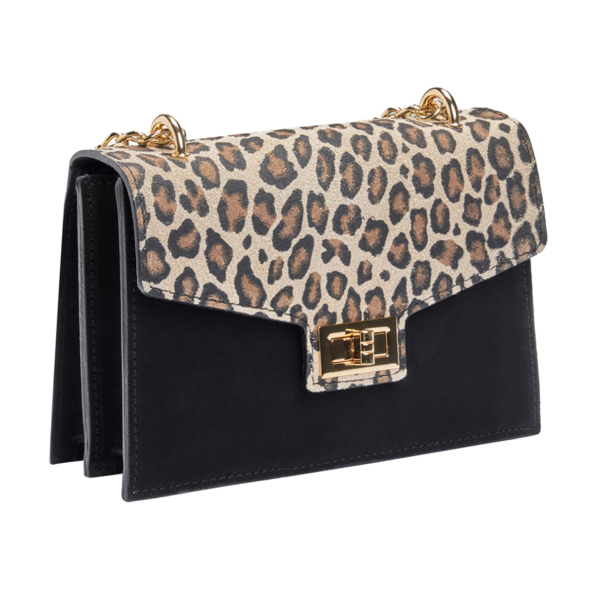 La version bicolore de Milano, avec sa base noire et son rabat à motif léopard, représente un chef-d’œuvre d’harmonie entre le raffinement classique et l’audace contemporaine. Le corps du sac est confectionné en cuir suédé noir, doux au toucher et d’une profondeur captivante qui lui confère une allure sophistiquée tout en demeurant discrète. En parallèle, le rabat orné d’un imprimé léopard en cuir naturel apporte une touche osée et affirmée, idéale pour celles qui n’hésitent pas à se distinguer sans compromettre leur élégance. La fermeture est embellie par une délicate boucle dorée dotée d’un système à pression, garantissant sécurité et aisance lors des manipulations. La chaîne pour l’épaule présente également un éclat doré; elle peut être portée soit longue soit repliée sur elle-même, transformant ainsi la pochette chic en un accessoire de soirée élégant. À l’intérieur, l’organisation est soignée grâce à une doublure robuste accompagnée d’une poche interne dédiée aux essentiels. Ses dimensions compactes mais pratiques font de cet article le choix parfait pour toutes les occasions : qu’il s’agisse d’un apéritif dans le centre-ville, d’un dîner formel ou même pour revitaliser une tenue professionnelle. Chaque pièce est réalisée artisanalement en Italie avec des matériaux soigneusement sélectionnés et un souci du détail que seule la maroquinerie artisanale sait offrir. Ainsi Milano noir avec ses accents léopard devient l’allié idéal pour la femme souhaitant allier sobriété et originalité dans chaque geste qu’elle pose.