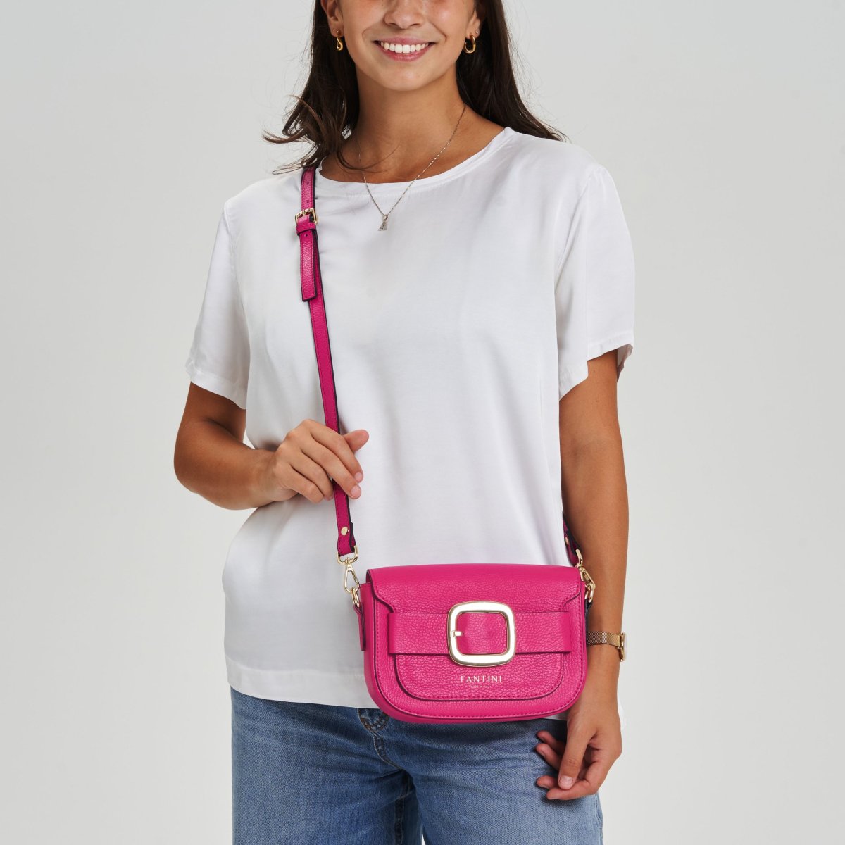 Le sac à bandoulière Perla en cuir fuchsia constitue l’accessoire idéal pour apporter une touche d’élégance et de féminité à votre style quotidien. Confectionné dans un cuir de première qualité, ce modèle se démarque par sa texture martelée qui confère profondeur et caractère au doux ton fuchsia. Équipé d’une fermeture magnétique en métal, il est embellit par une boucle dorée qui assure non seulement la sécurité mais ajoute également une note luxueuse. Son design compact et sophistiqué s’accompagne de coutures contrastantes et de détails dorés, mettant ainsi en avant le savoir-faire artisanal et l’attention portée aux finitions. Parfait pour toutes les occasions, que ce soit durant la journée professionnelle ou lors des sorties nocturnes, le sac Perla en cuir martelé fuchsia représente un accessoire incontournable pour ceux désireux d’allier esthétique et praticité. Grâce à son allure élégante alliée à des matériaux haut de gamme, cet article rehausse votre garde-robe avec classe et sophistication, le rendant approprié pour chaque moment spécial.