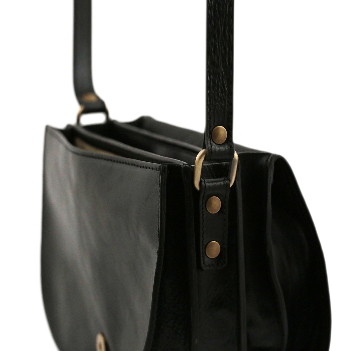 Sac Tolfa en cuir noir, confectionné à la main en Italie