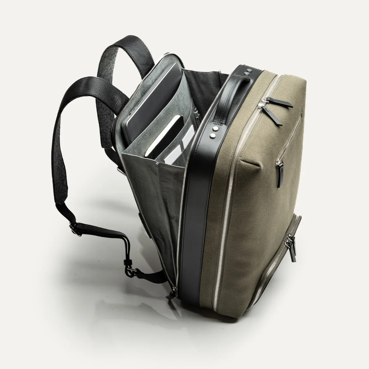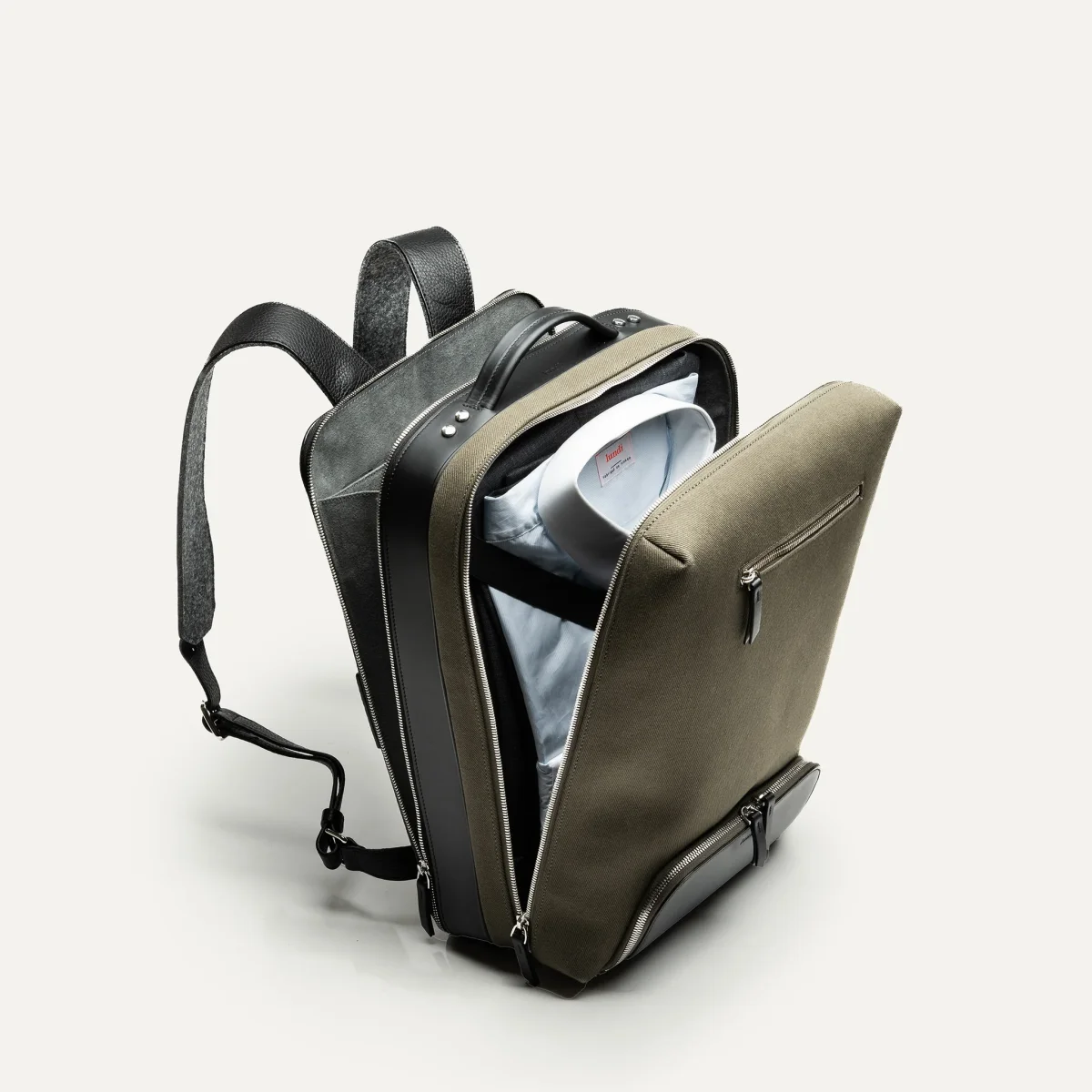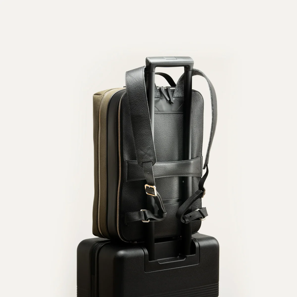 Sac à dos de voyage en toile et cuir – ANTOINE kaki & noir