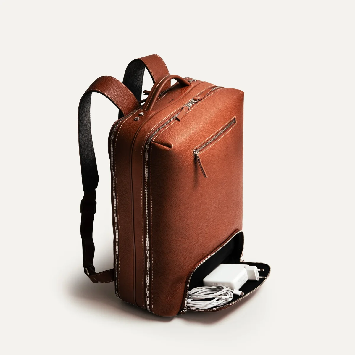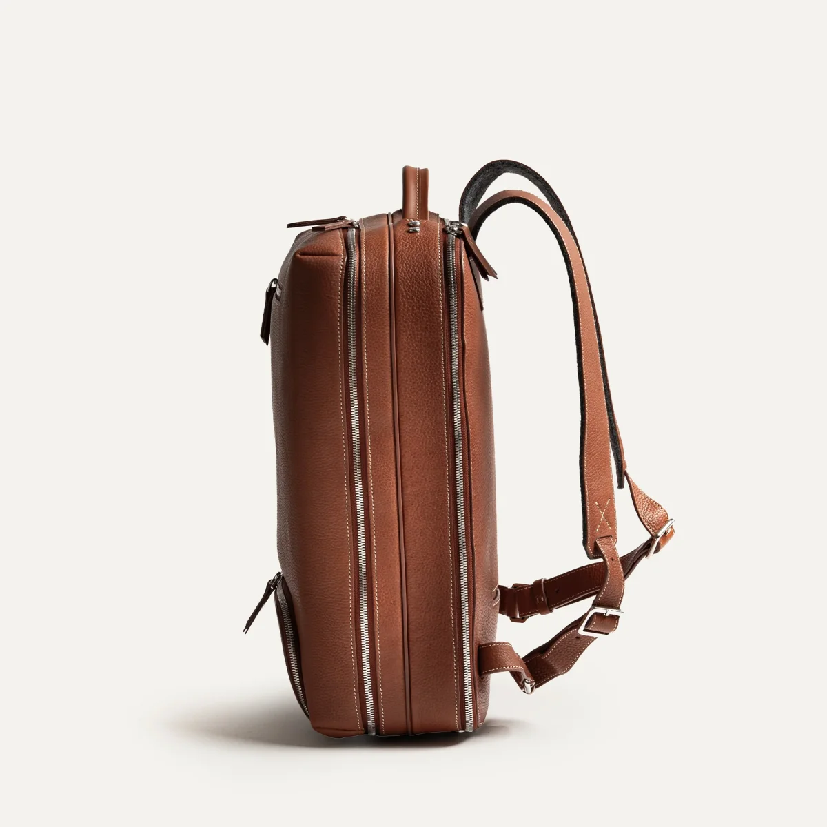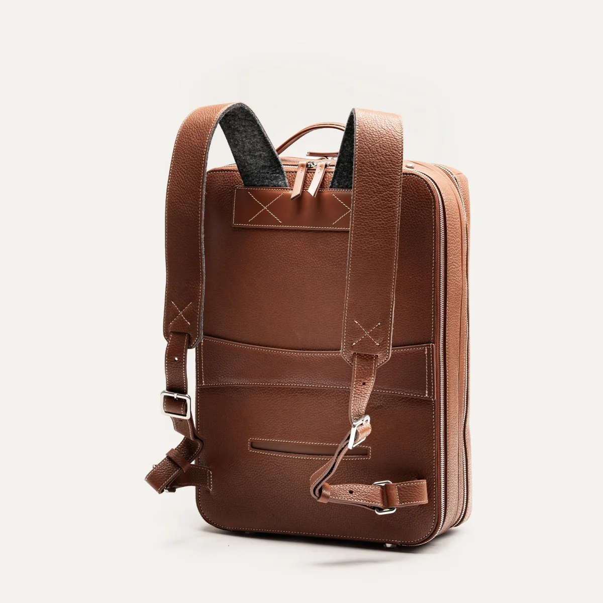 Le sac à dos GASPARD est ici réalisé dans notre cuir grainé cognac, un cuir pleine fleur souple et résistant, tanné selon un procédé semi-végétal qui développera une belle patine naturelle avec le temps.