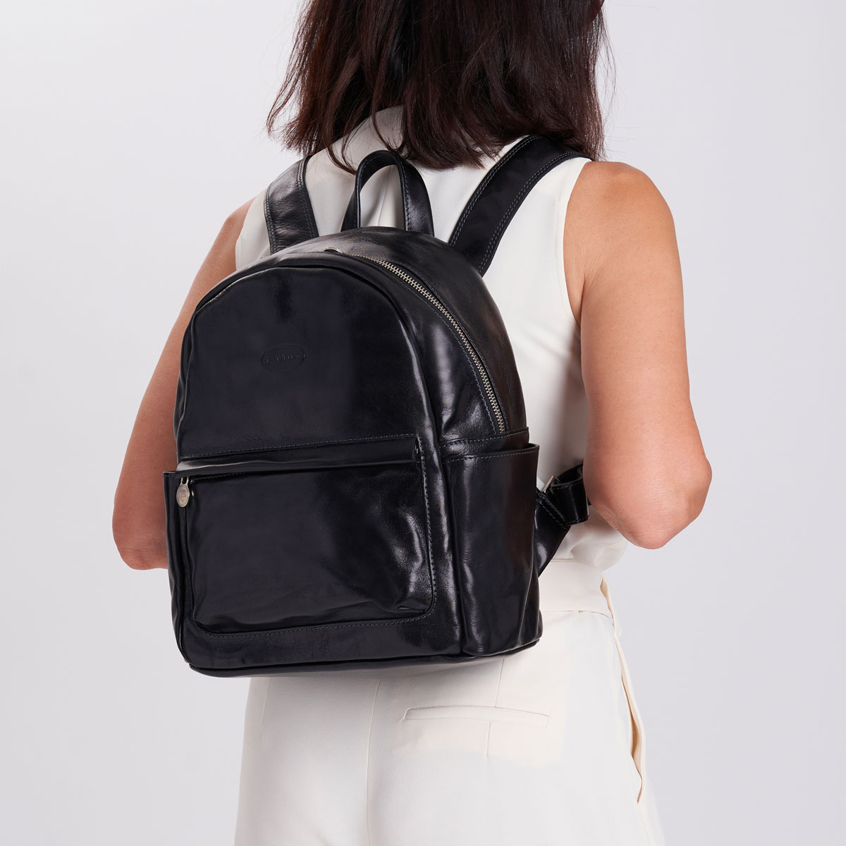 Design original et structure ronde, lignes modernes mais avec des accents du passé et de la tradition florentine de la maroquinerie, le sac à dos noir en cuir Angelico est parfait pour tous ceux qui recherchent simplicité et raffinement dans un seul accessoire. Cuir de haute prestige et qualité italienne, qui donne résistance et élasticité au modèle qui, avec le temps, accentuera toujours plus ses caractéristiques dun cuir de grande valeur. Sac à dos vintage doté de zips métalliques et de nombreuses poches intérieures et extérieures pour contenir tous les objets dont vous avez besoin dans la journée. Bretelles réglables et poignée renforcée vous permettent demporter votre sac à dos partout, sortie entre amis, bureau, cinéma, un accessoire parfait pour chaque occasion. Les détails contribuent à définir un modèle unique et inimitable, symbole de la maroquinerie italienne.
