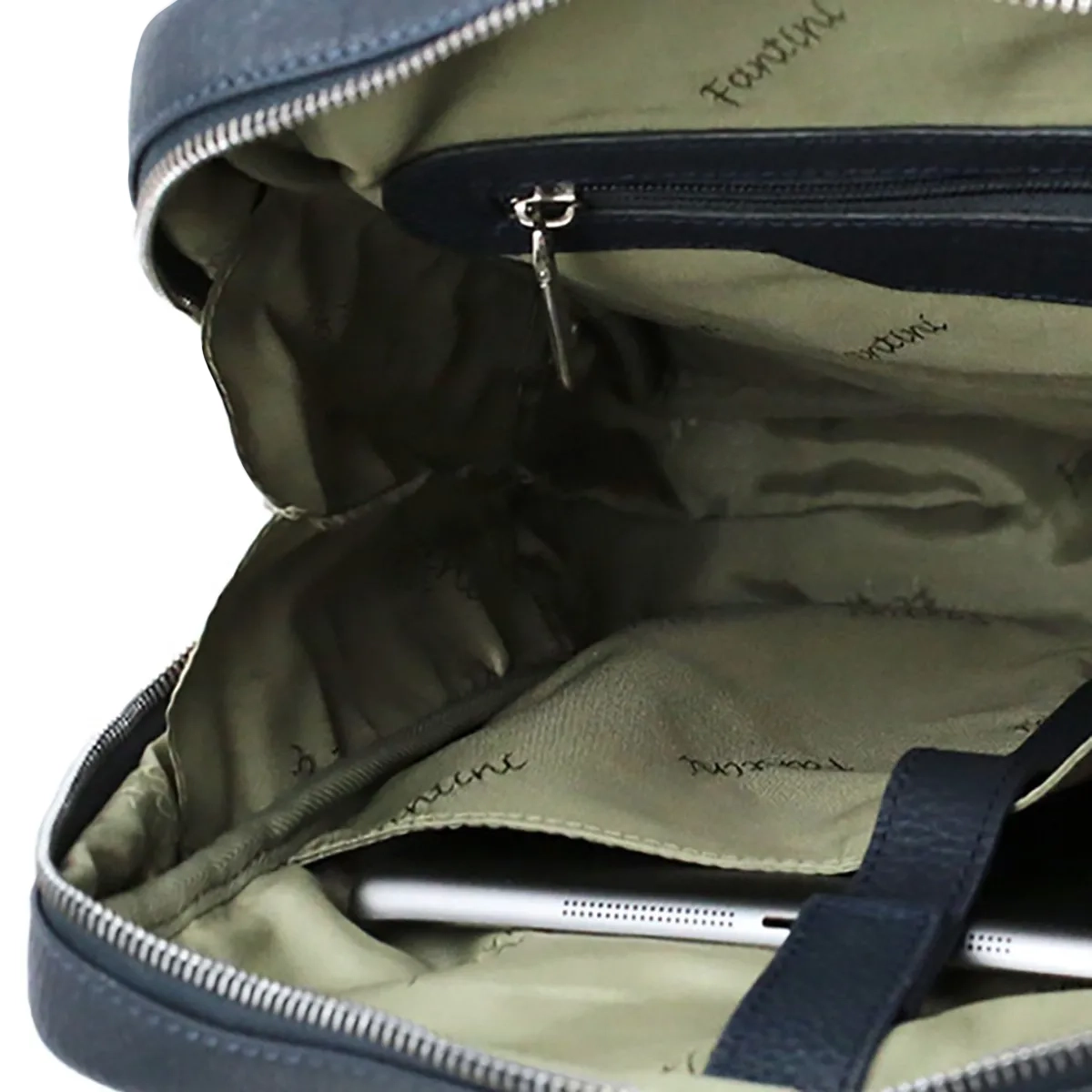 Es-tu une femme qui souhaite toujours être à la pointe de la mode et impeccable en toute circonstance ? Le sac à dos bleu nuit en cuir Fortuna est l’accessoire idéal que tu recherches. Sa forme carrée confère à ce petit zaino un caractère unique, très prisé par les femmes et les jeunes filles de tous âges, qu’il s’agisse du travail, des études ou d’une sortie entre amies. La peau est travaillée pour obtenir un effet martelé, garantissant non seulement une grande résistance au cuir utilisé mais aussi sa durabilité face aux usages quotidiens intensifs. Il offre plusieurs poches extérieures sur le devant comme à l’arrière ainsi que tout autant de compartiments intérieurs pour bien organiser tous tes essentiels durant la journée. Tu peux choisir de le porter sur ton épaule grâce aux bretelles réglables confortables ou dans ta main avec la poignée renforcée en cuir. Le logo Fantini gravé sur un triangle argenté associé aux coutures faites main avec minutie par des artisans italiens expérimentés complètent parfaitement le design moderne et élégant de ce zainetto Navy blue.