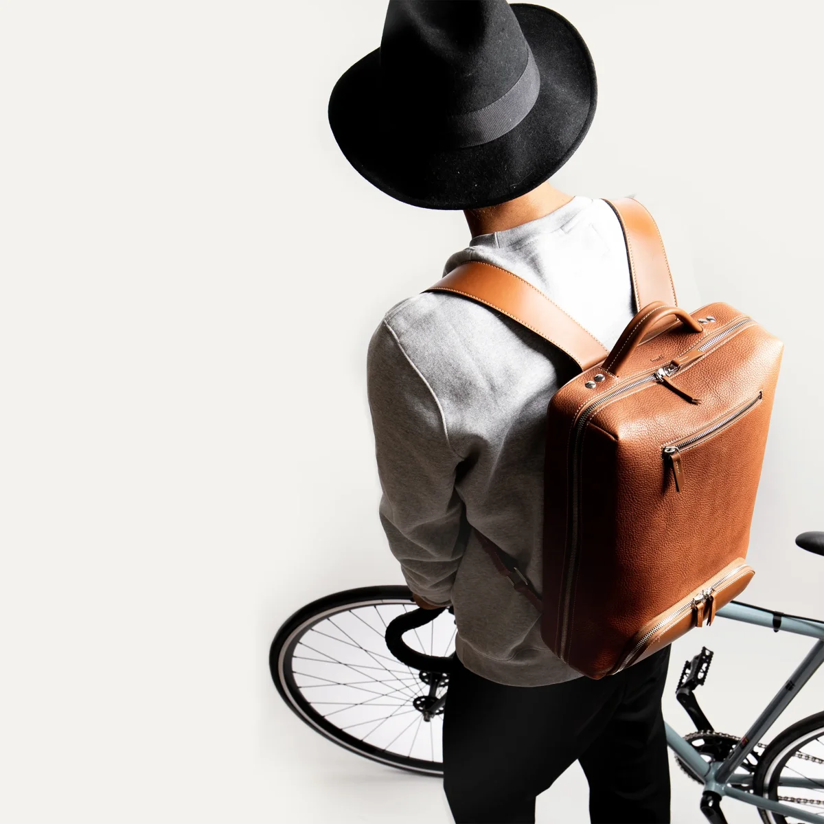Sac à dos en cuir grainé ~ GIANI II – COGNAC