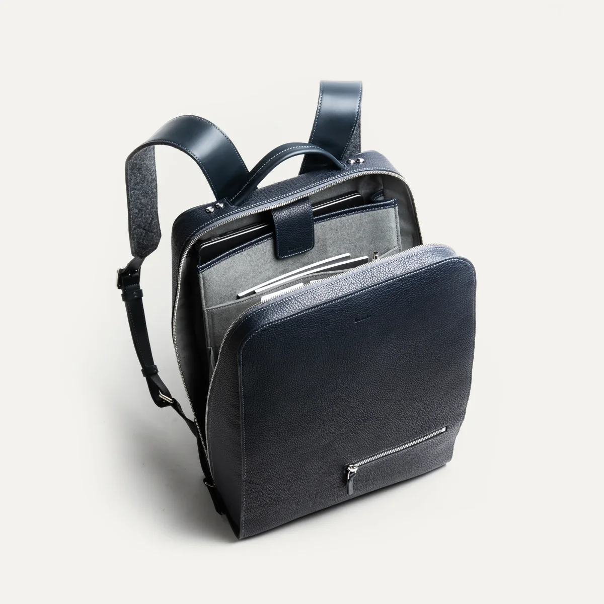 Le bleu marine de ce sac à dos s’accorde naturellement avec toutes les tenues professionnelles. Une teinte sobre et polyvalente qui accentue la modernité de ses lignes épurées. Le sac Marcus est un compagnon fiable pour affronter chaque journée avec style.