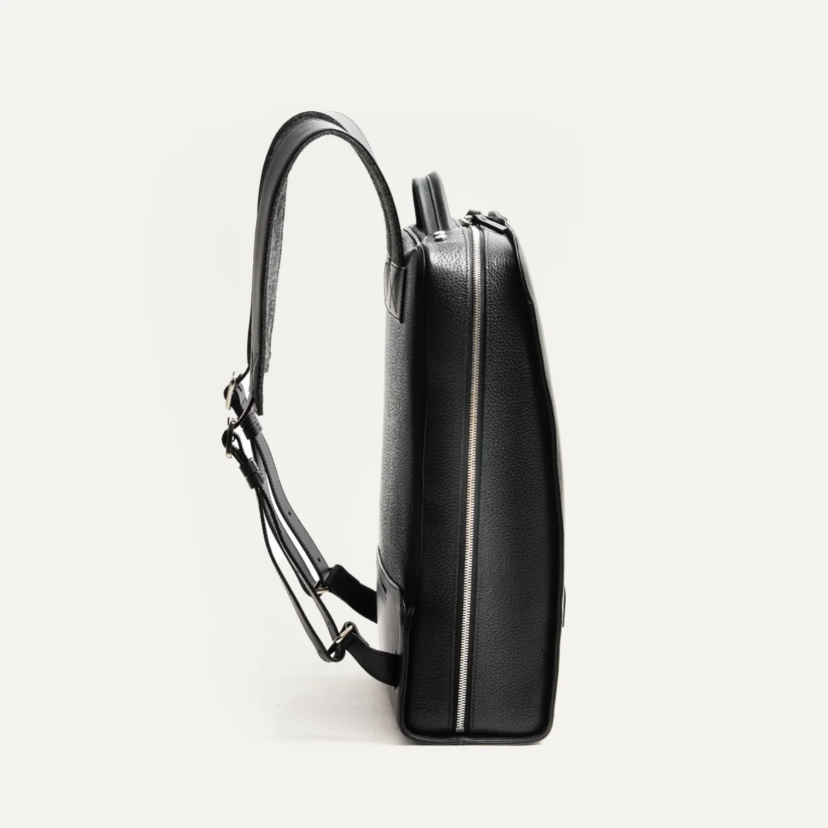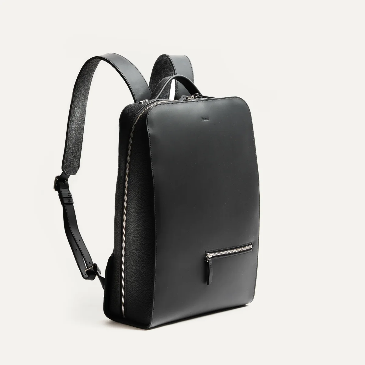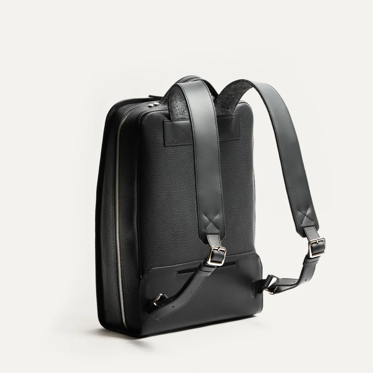 Le sac à dos MATTEO en cuir lisse noir a été imaginé pour accompagner les hommes modernes dans leur quotidien professionnel. Son design épuré et structuré met en valeur une matière noble : un cuir pleine fleur au tannage semi-végétal, à la fois souple, résistant et subtilement satiné.