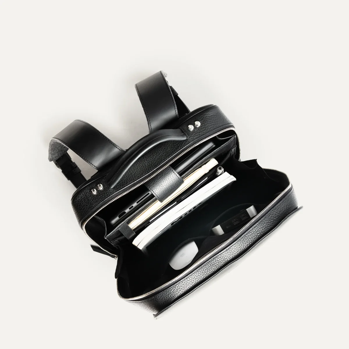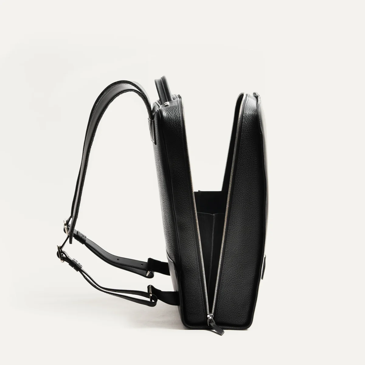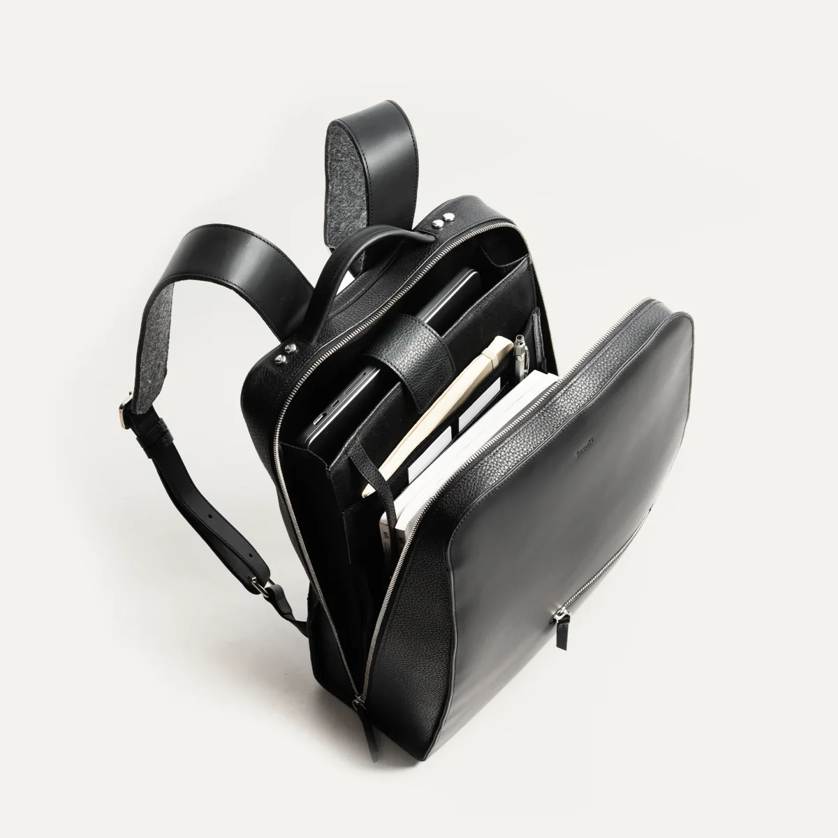 Le sac à dos MATTEO en cuir lisse noir a été imaginé pour accompagner les hommes modernes dans leur quotidien professionnel. Son design épuré et structuré met en valeur une matière noble : un cuir pleine fleur au tannage semi-végétal, à la fois souple, résistant et subtilement satiné.