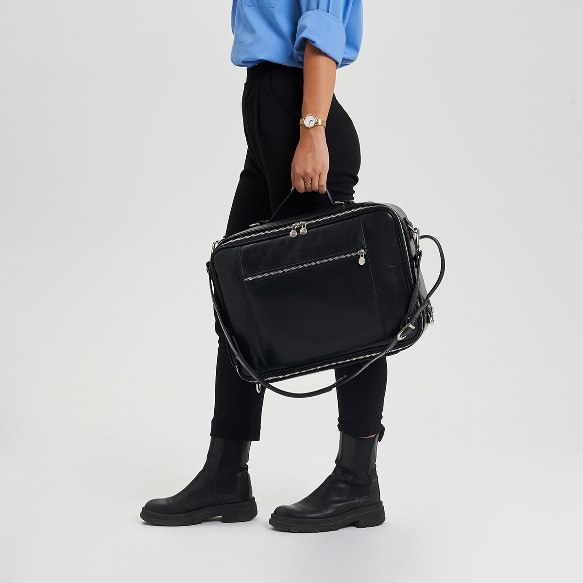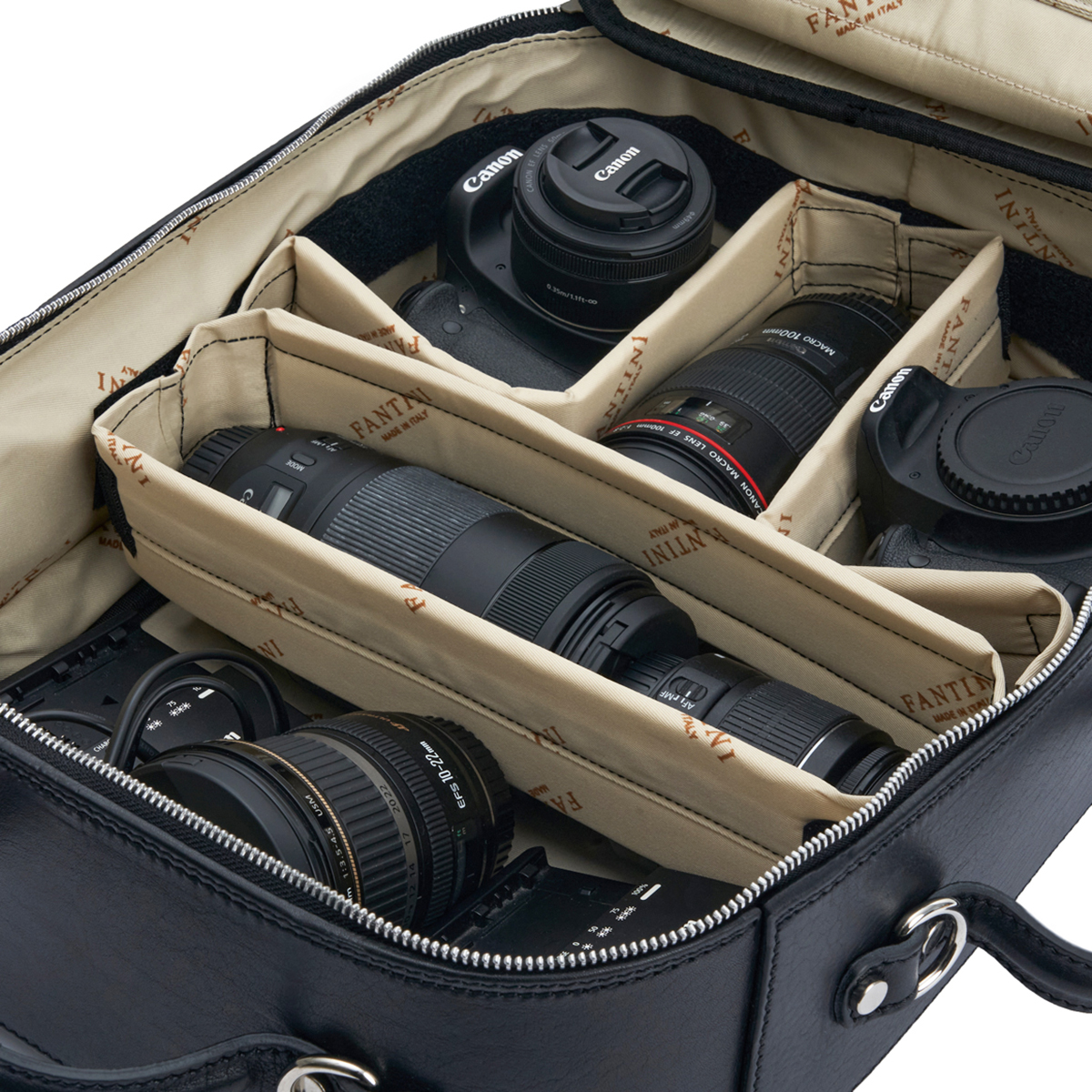 Le Photograph en cuir noir est le sac à dos photo idéal pour les professionnels qui souhaitent allier style et praticité. Conçu pour transporter et protéger au mieux des équipements photographiques de tout type, ce sac à dos dispose dun grand compartiment interne modulable avec des sangles auto-agrippantes qui permet de créer jusquà 5 espaces séparés pour des caméras, des objectifs et dautres accessoires. Le cuir noir de haute qualité confère un aspect élégant et professionnel, adapté tant pour les voyages que pour les séances photo urbaines. Les bretelles sont réglables et entièrement amovibles, permettant de transformer le sac à dos photo en une pratique bandoulière. Le design comprend deux compartiments externes avec zip, un à lavant et un à larrière, parfaits pour ranger de petits objets auxquels accéder rapidement. À lintérieur de ce sac à dos pour photographes se trouvent 3 poches supplémentaires, dont une avec zip, et un compartiment dédié pour tablette ou ordinateur portable, idéal pour ceux qui ont besoin demporter des appareils technologiques. Le Photograph en cuir noir est le compagnon parfait pour les professionnels qui exigent un accessoire résistant et raffiné, alliant au mieux esthétique et fonctionnalité. Que vous exploriez la nature ou immortalisiez la vie citadine, ce sac à dos photo professionnel garantit une organisation optimale et une protection maximale pour votre équipement.
