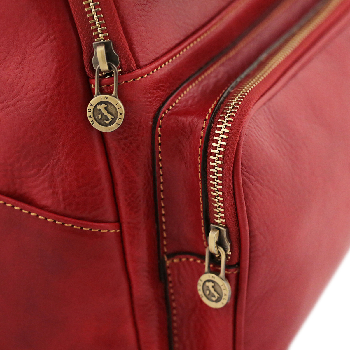 Le petit sac à dos en cuir rouge Venezia est un modèle emblématique de la Pelletteria Fantini et avec sa touche de couleur vive, il saura vous séduire chaque fois que vous le portez. C’est un accessoire qui s’associe aisément à toutes les tenues, allant du style décontracté pour une promenade aux ensembles plus raffinés pour des réunions professionnelles ou l’université. Ce sac à dos se distingue par sa grande poche avant et son vaste espace intérieur capable d’accueillir tout ce dont vous avez besoin. Il se transporte facilement grâce aux bretelles ajustables confortables ou au poigné renforcé. Les fermetures éclair métalliques ainsi que les coutures faites main sont des éléments qui font de ce zainetto en cuir rouge une pièce recherchée et singulière, alliant élégance et haute couture. Le cuir représente un matériau précieux, celui sélectionné par notre pelletterie italienne étant encore plus prestigieux. La transformation du cuir nécessite plusieurs heures de travail minutieux sous l’œil attentif des meilleurs artisans, produisant ainsi un article d’une qualité exceptionnelle comme cet ouvrage artisanal.