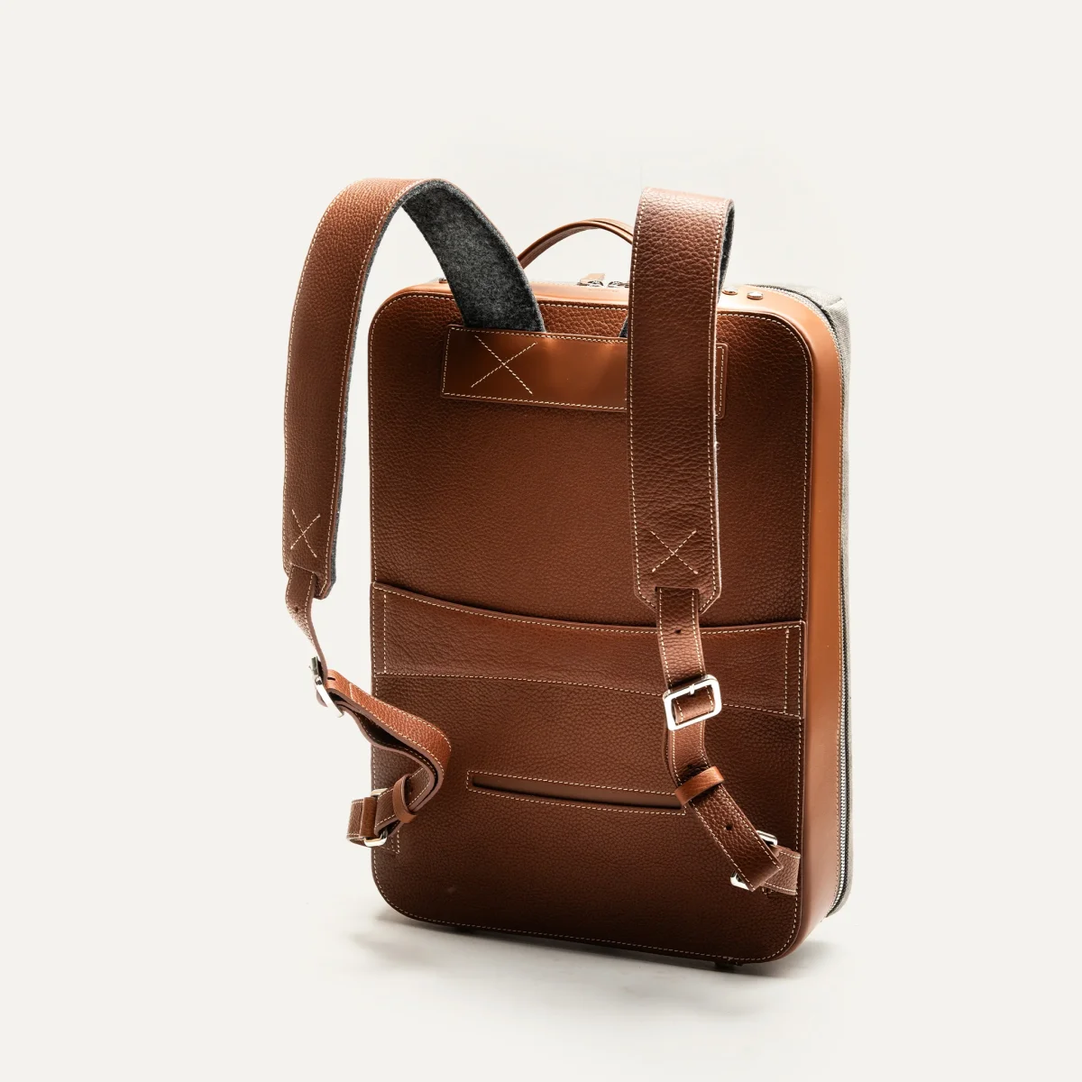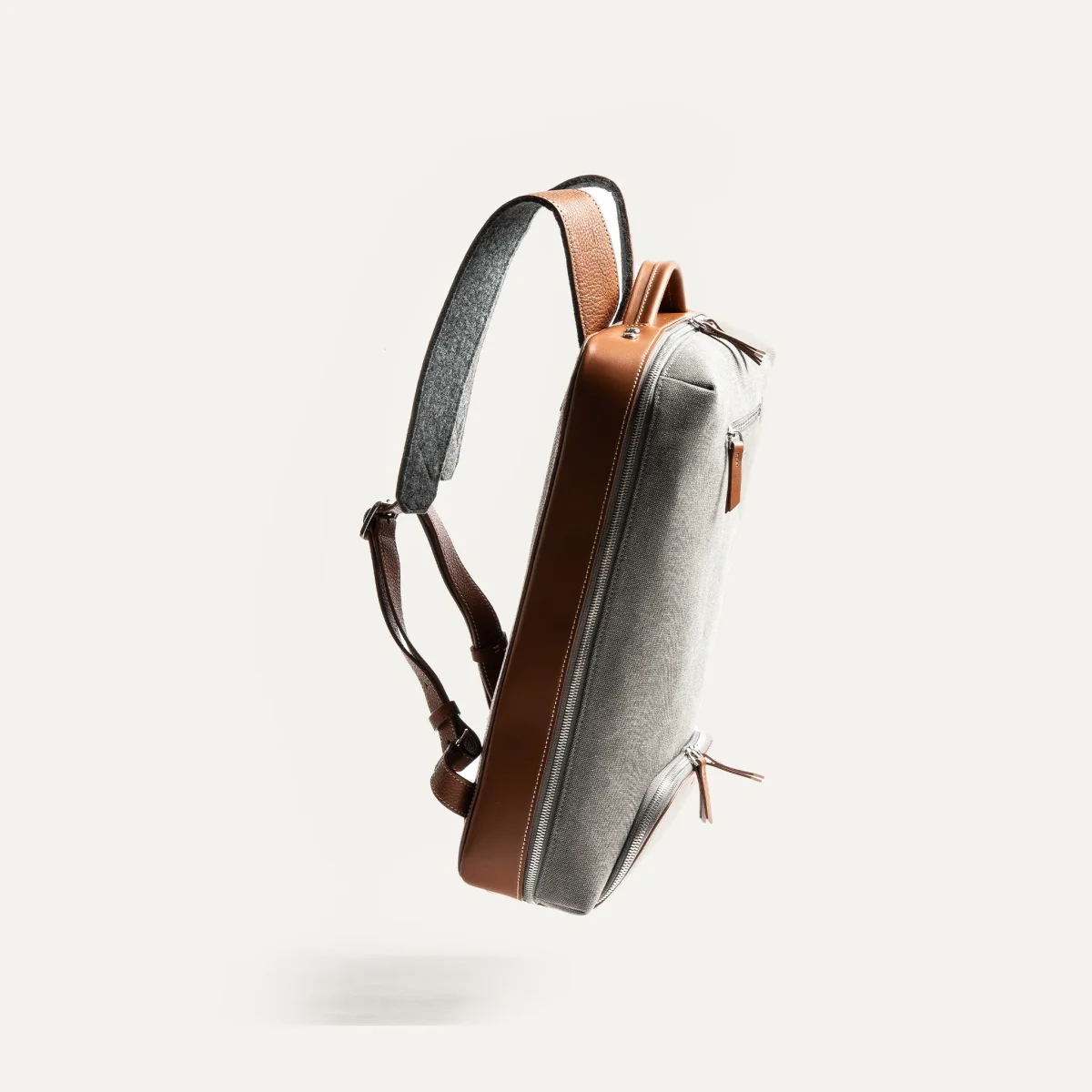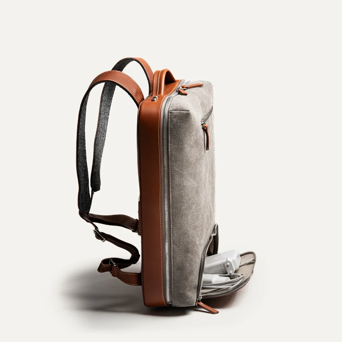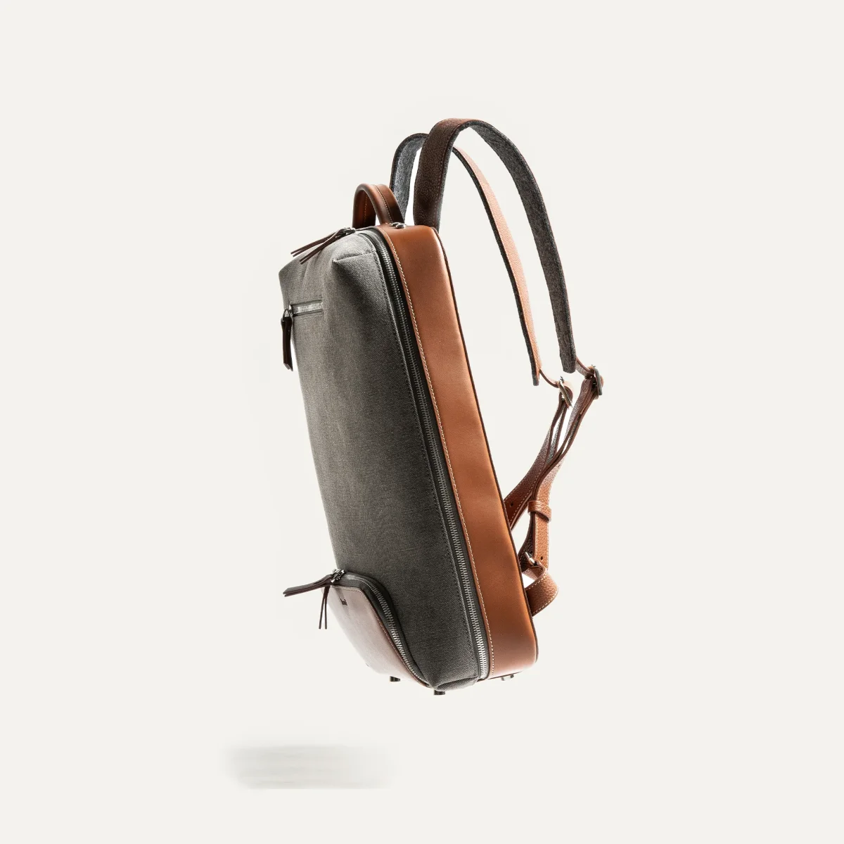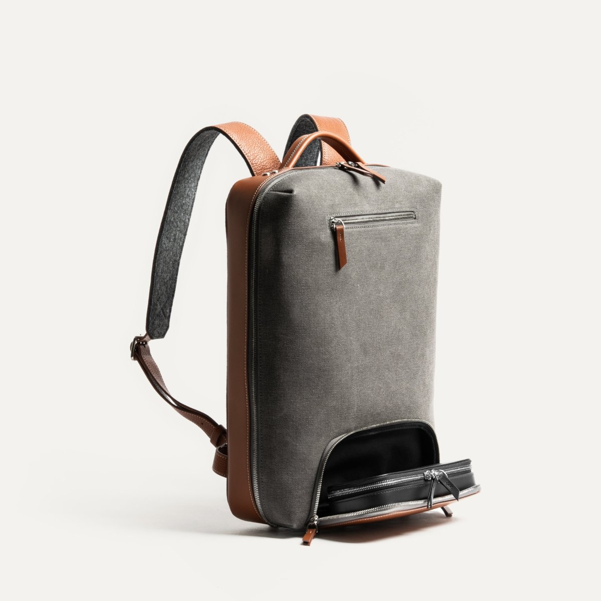 Sac à dos en toile et cuir ~ RUBENS – GRIS & COGNAC