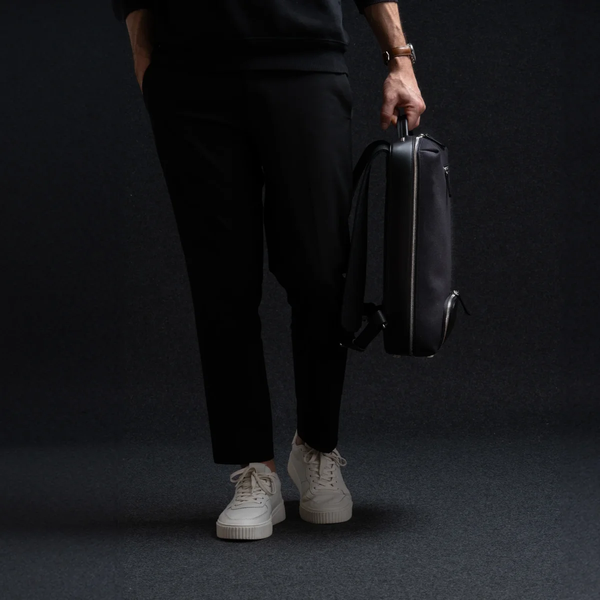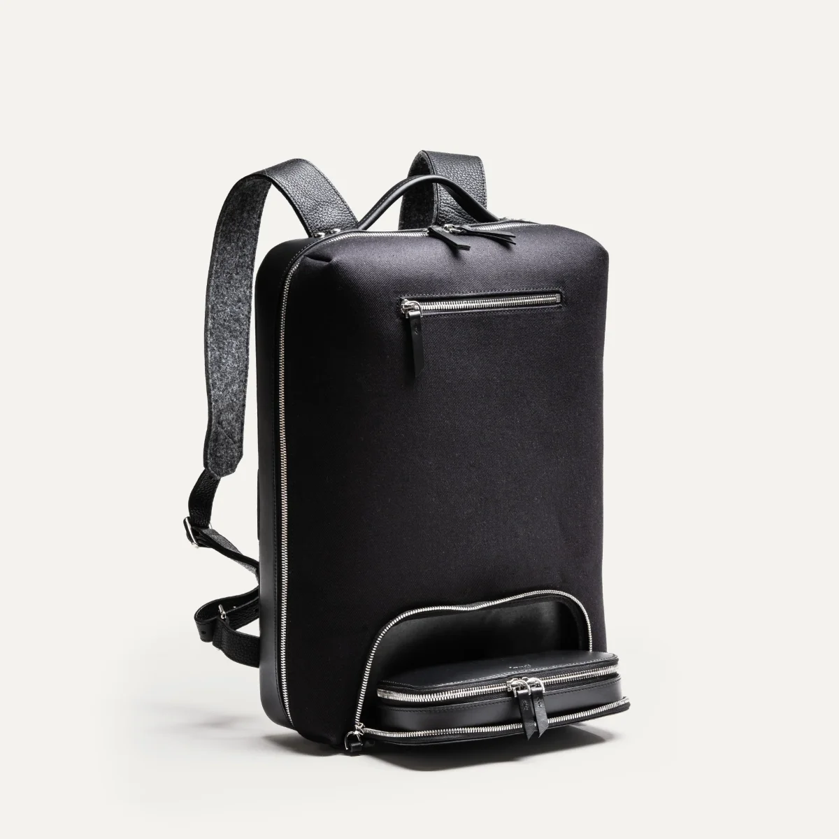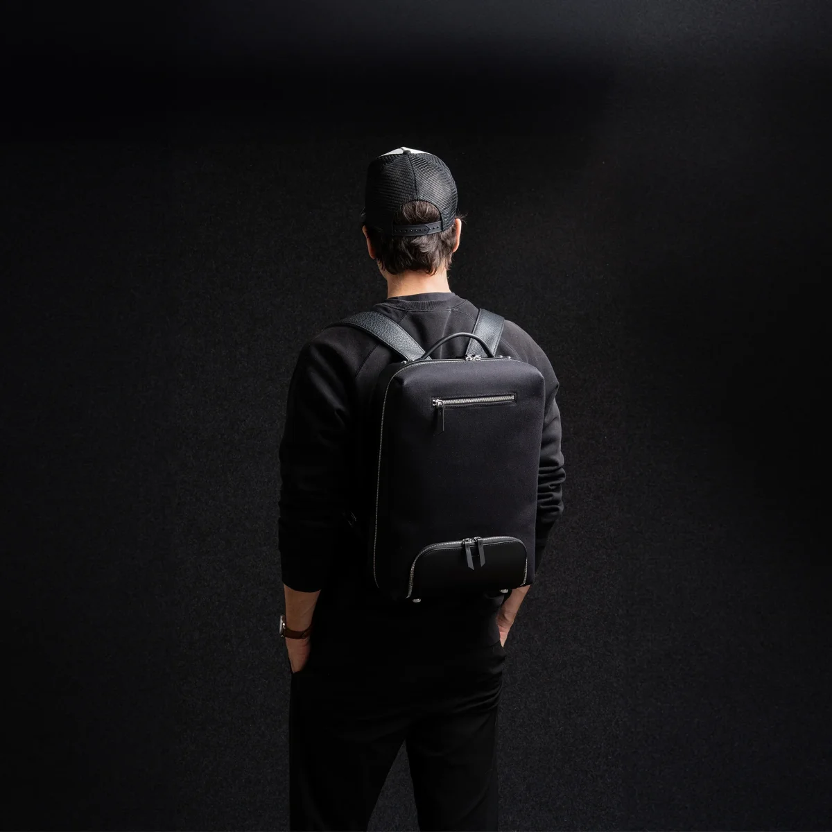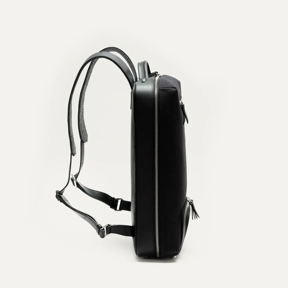 Réalisé dans notre toile de coton sergé noire traitée déperlante, ce sac à dos Rubens vous apportera tout ce dont vous avez besoin pour affronter vos journées de travail avec sérénité. Compact, léger, élégant, il se glisse facilement dans tous vos déplacements urbains.