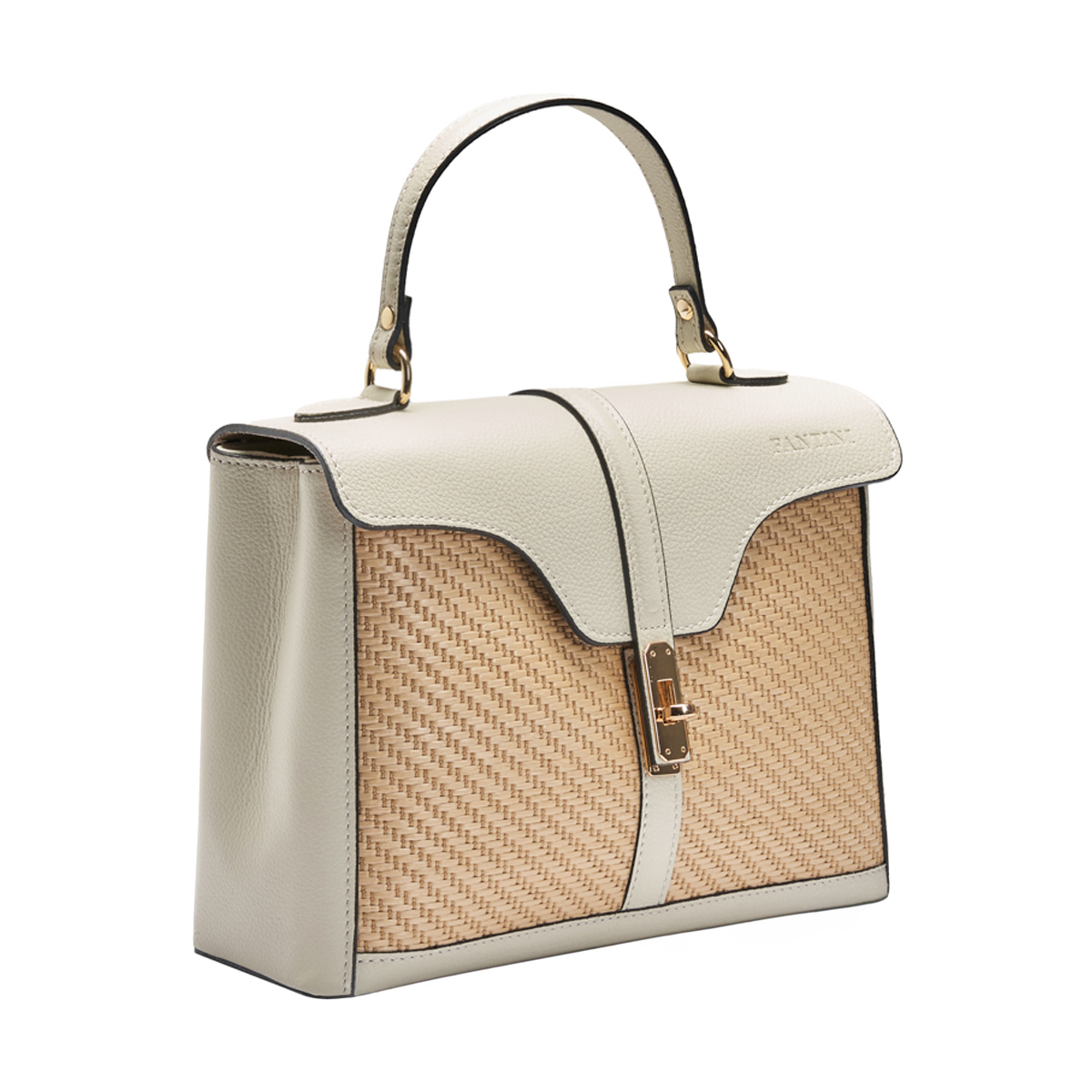 Élégance intemporelle avec le sac Flora en raphia et cuir crème