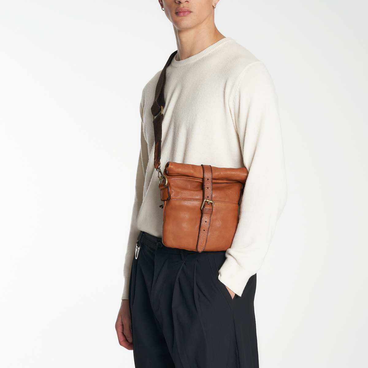 Le modèle Ferrara est une pochette pour homme très élégante et traditionnelle qui fait partie des accessoires masculins en cuir de notre pelletteria. Il sagit dun article caractérisé par un cuir très doux, qui subit de nombreux lavages durant le processus de production. Ce qui en résulte est une pochette artisanale pour homme très confortable et polyvalente. Design classique, avec un rouleau supérieur en cuir pour la fermeture qui prévoit un bouton magnétique et un lien vertical. Bandoulière réglable, inserts métalliques et impression de la marque définissent lextérieur de cette pochette artisanale. Lintérieur est très spacieux avec un seul compartiment et quelques poches pour organiser tous les objets dont vous avez besoin durant la journée. Produit artisanal et 100% Made in Italy.