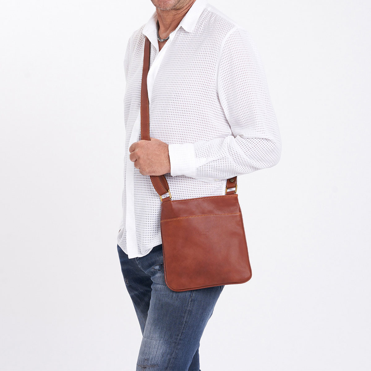 Sac bandoulière masculine en cuir marron, l’accessoire fait main que vous recherchez