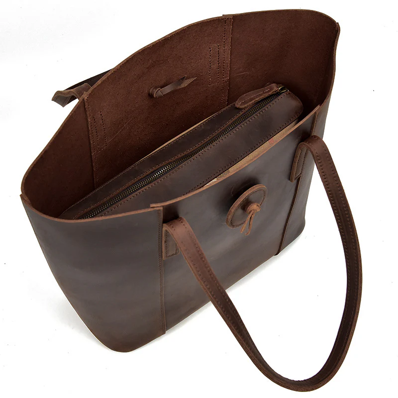 Conçu pour durer, ce sac en cuir épais se distingue par ses détails soignés comme sa fermeture à lacet unique et ses anses renforcées. Un accessoire de mode durable qui privilégie la qualité des matières pour vous accompagner fidèlement au quotidien.