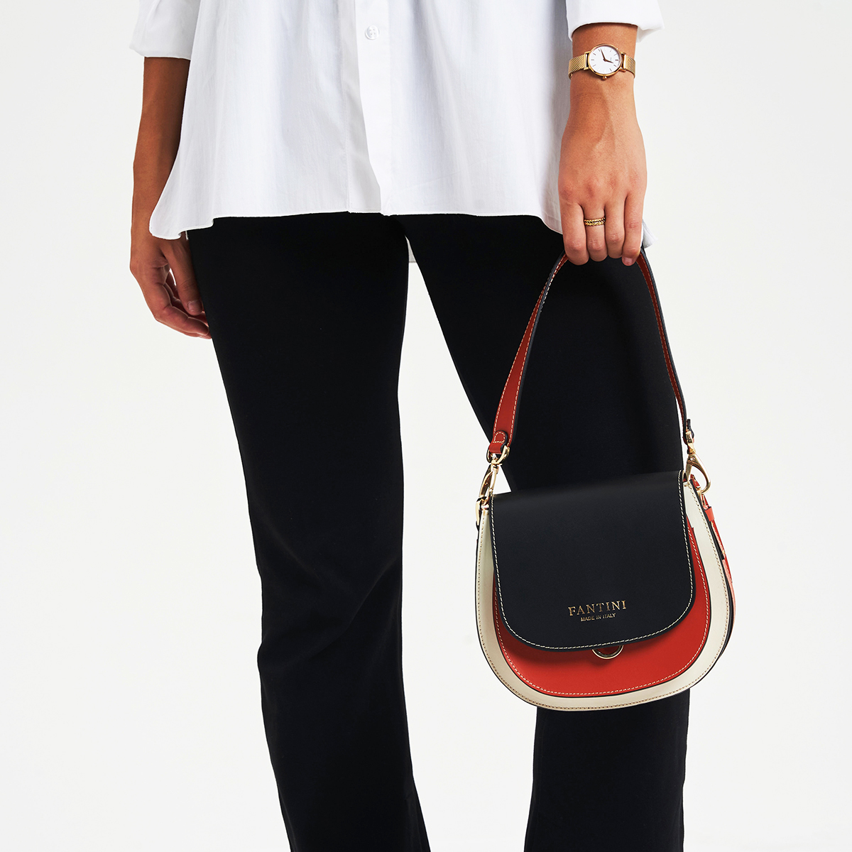 La pochette pour femme Beatrice naît comme un élégant sac à main en cuir de haute qualité, avec un design qui allie élégance et polyvalence. Le contraste des couleurs noir, blanc et brique apporte une touche moderne et sophistiquée, parfaite pour chaque occasion. Le sac est doté dune fermeture magnétique en métal et présente à lintérieur un compartiment spacieux avec deux poches, dont une avec zip pour garder en sécurité les objets essentiels. Bien quelle soit conçue comme un sac à main, la Beatrice inclut une bandoulière longue amovible et réglable, qui permet de la porter également en bandoulière lorsque vous souhaitez plus de praticité. Cette double fonctionnalité fait du sac Beatrice laccessoire idéal pour la femme dynamique qui veut passer avec aisance dun look formel à un look décontracté, sans renoncer au style et à la qualité du Made in Italy.